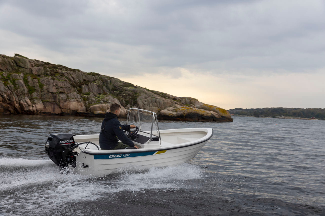 Båten har plass til 4 personer, vannsportutstyr, klær og fiskestenger. På grunn av det høye fribordet er det stabilt og trygt. Med en Cremo har du en god venn for livet.