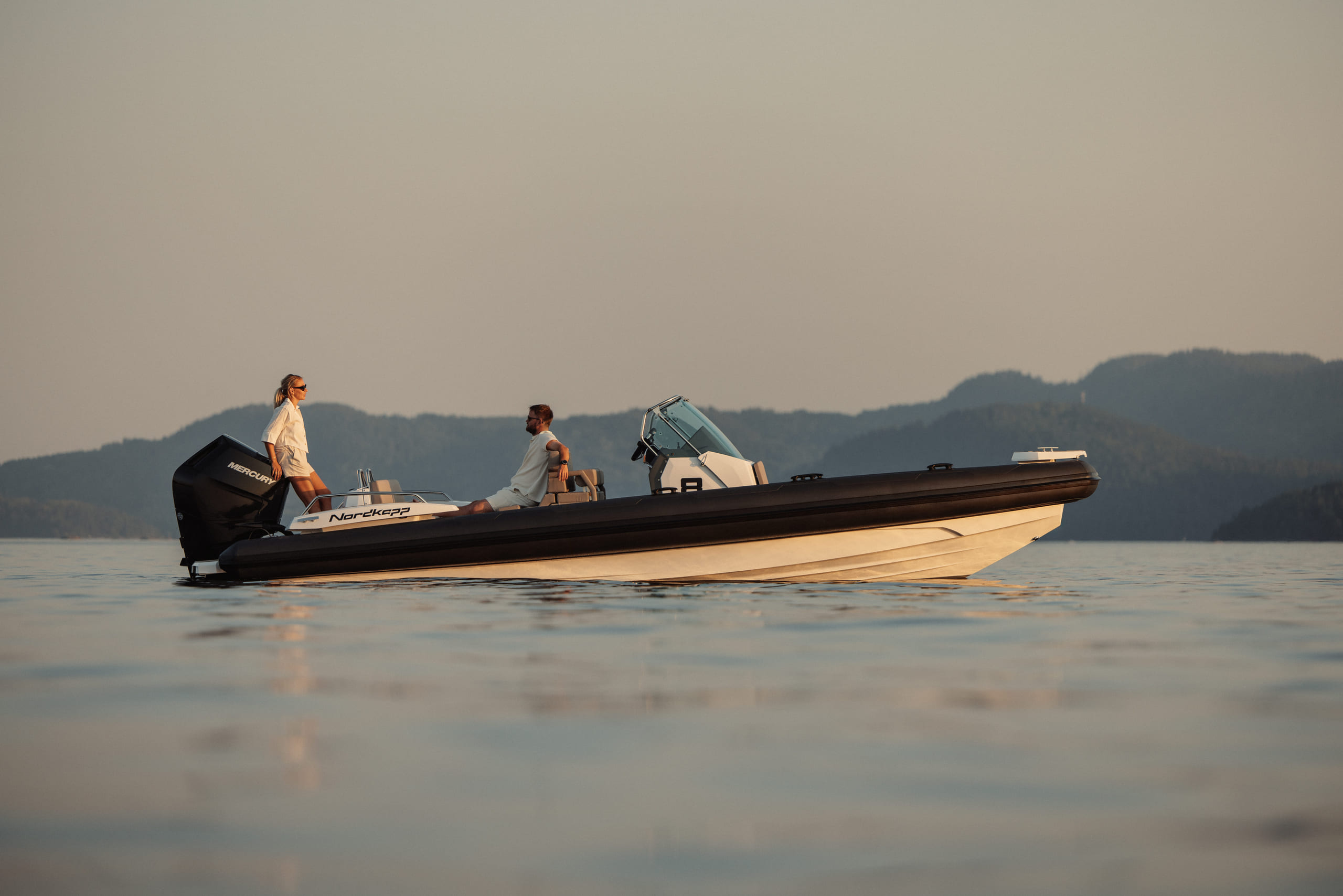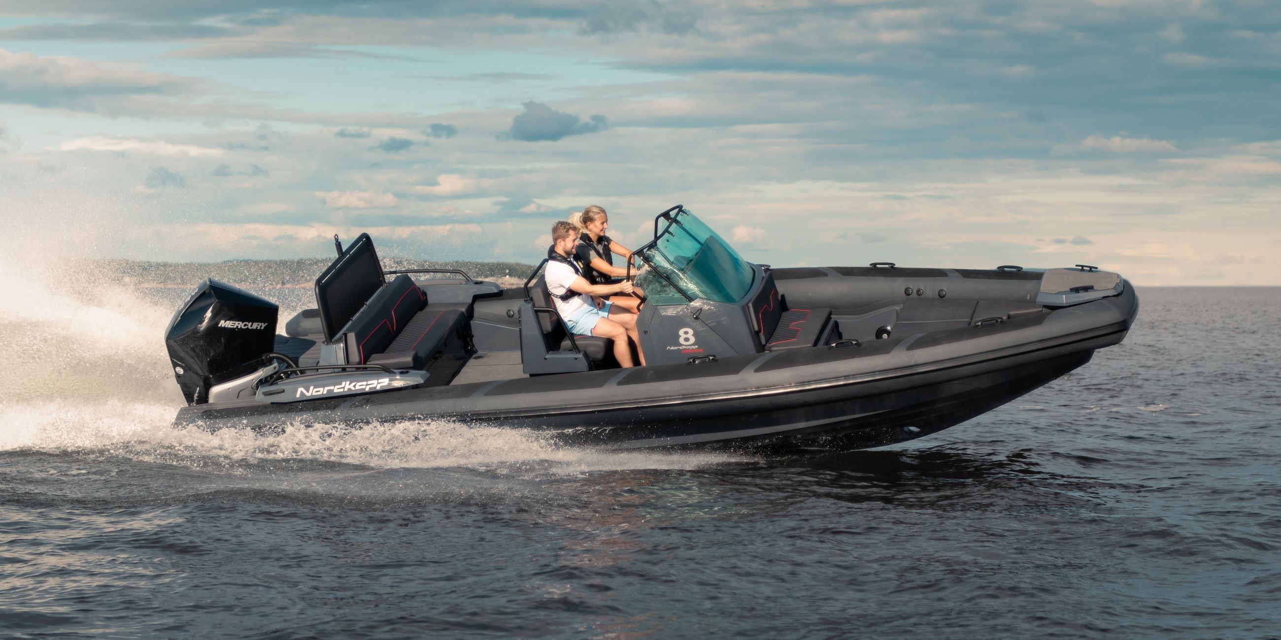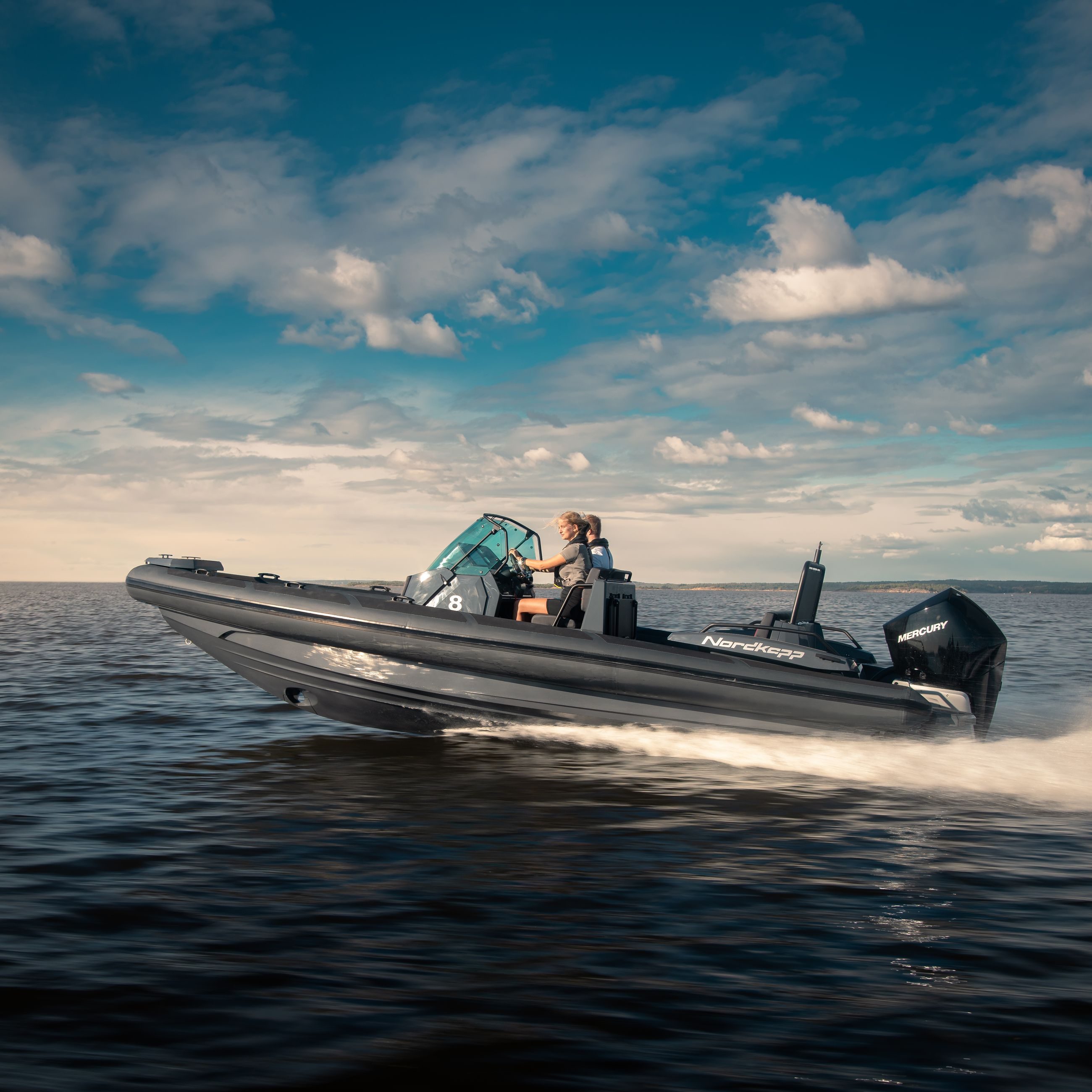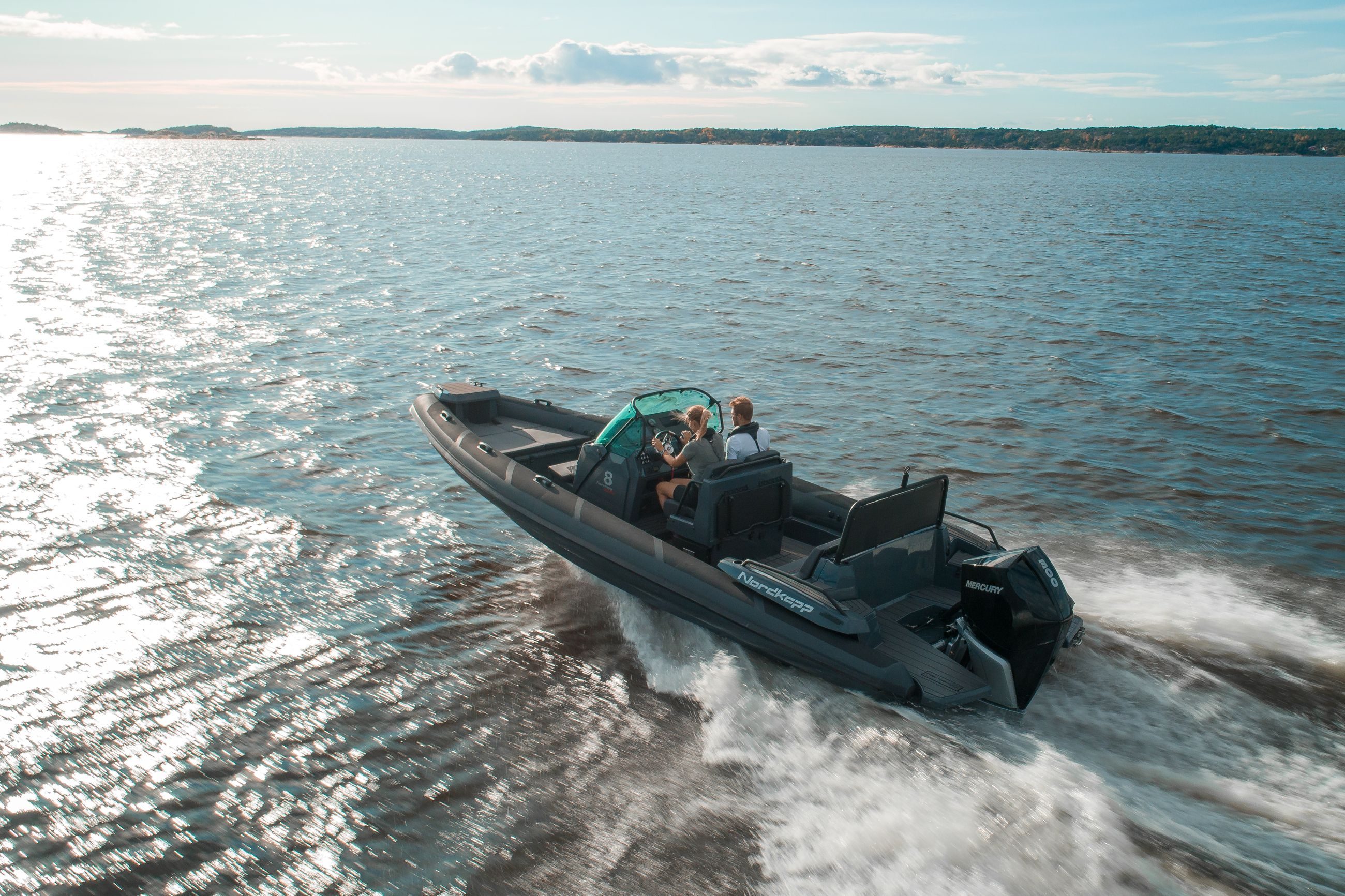 Nordkapp Airborne 8 er en sportslig RIB med fokus på komfort, kjøreglede og båtglede. Båtens skrog og design gir deg en unik kontroll, selv når forholdene blir utfordrende. Båten er laget med fokus på ulike komfortsoner, avhengig av når på året og hvordan du ønsker å bruke din Airborne 8. I baugen finner du et solid trinn for å gå ombord eller i land, stor solseng for varme sommerdager og en komfortabel sittebenk på fremsiden av konsollen.