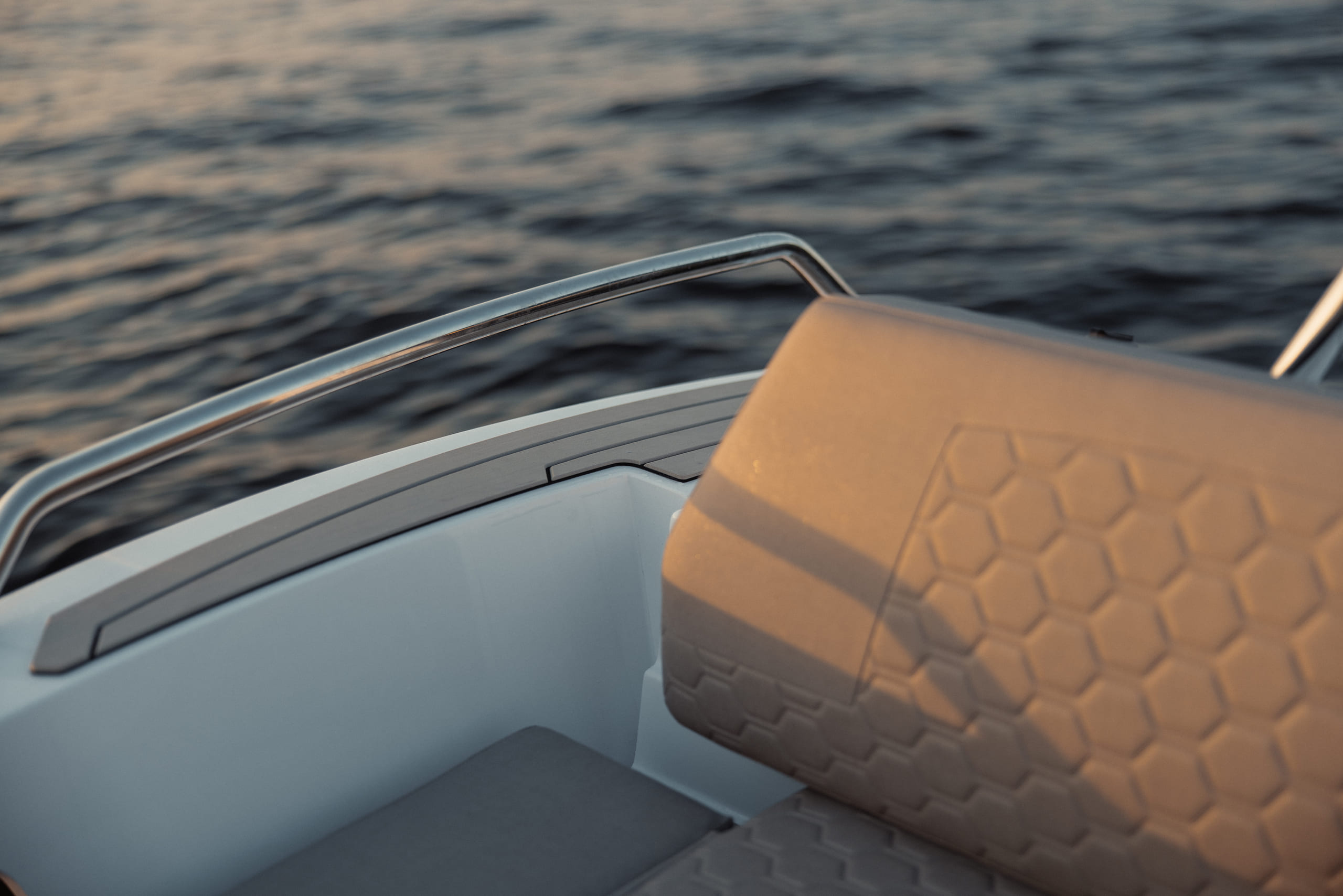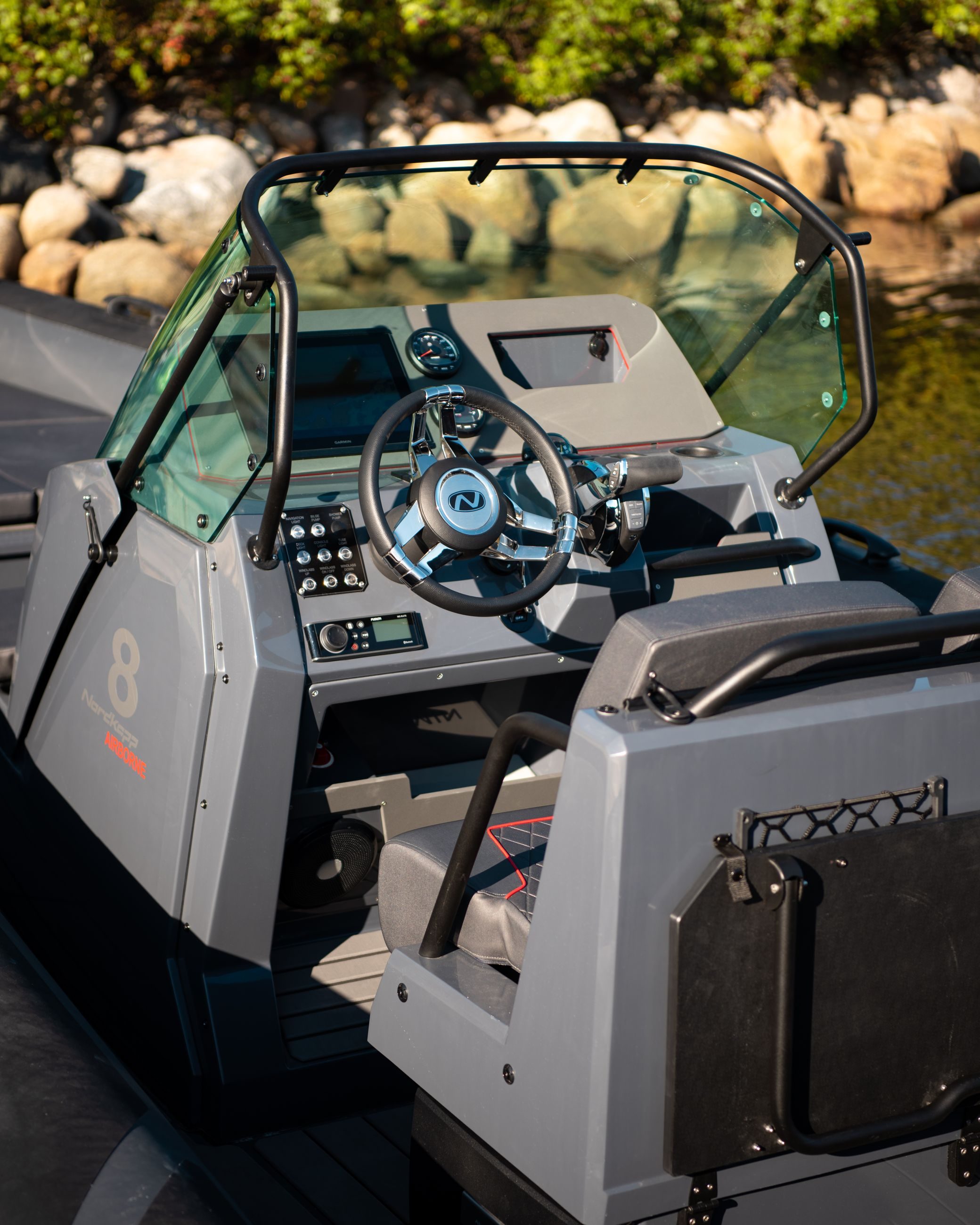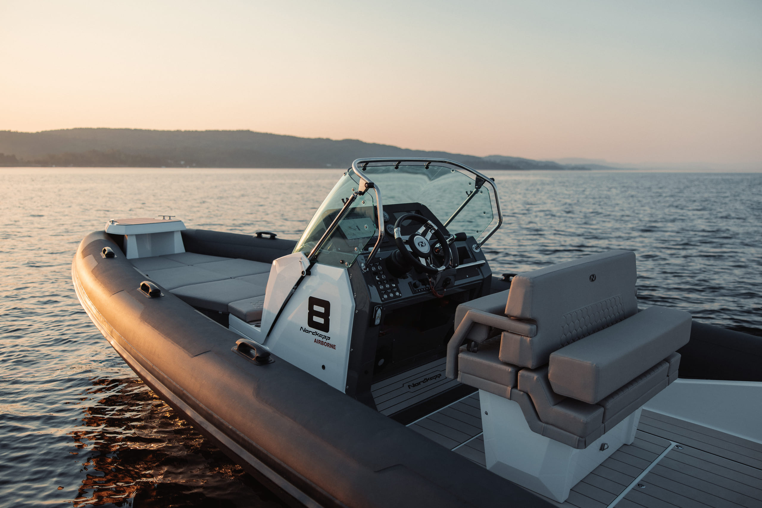 Airborne 8 skal oppleves som en trygg og god båt, og vi har lagt mye fokus i båtens design for å gi deg den følelsen. Båtens unike plassering og utforming av pontongene gir deg en RIB med følelsen av økt kontroll.