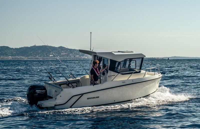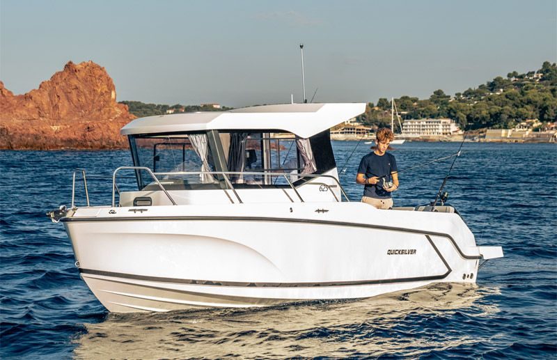 Quicksilver 625 Pilothouse er laget for den lidenskapelige fiskeren, fremre kabin er iøynefallende og elegant, spesielt i en tilgjengelig Explorer-versjon. Fra innsiden av kabinen kan du oppleve 360-graders panoramautsikt gjennom store vinduer og skyvedører i full lengde. Bygget for en komplett opplevelse på vannet for både familier, venner og fiskere, du vil elske de utvidede badeplattformene, den luftige takluken og den tilgjengelige solavskjermingen og dieselvarmeren.