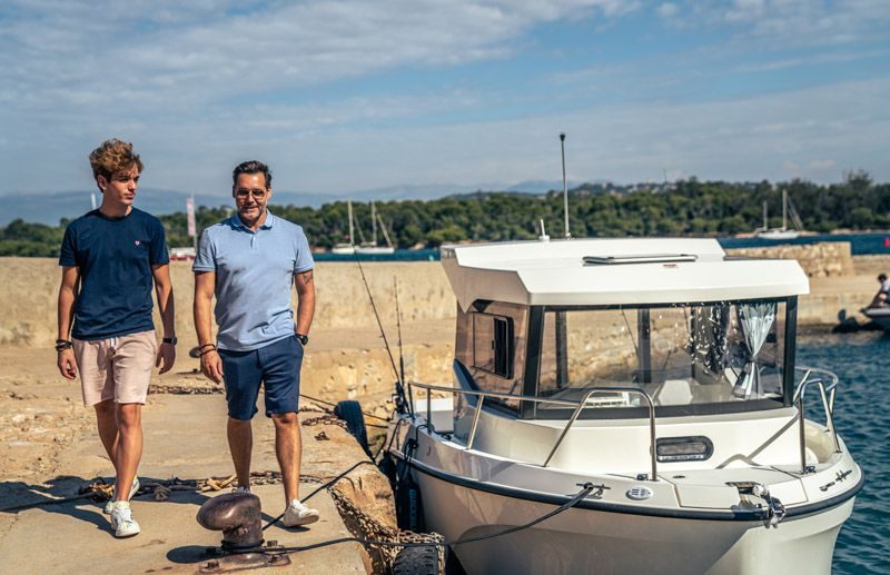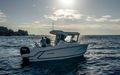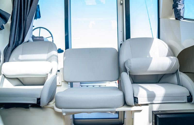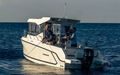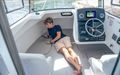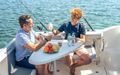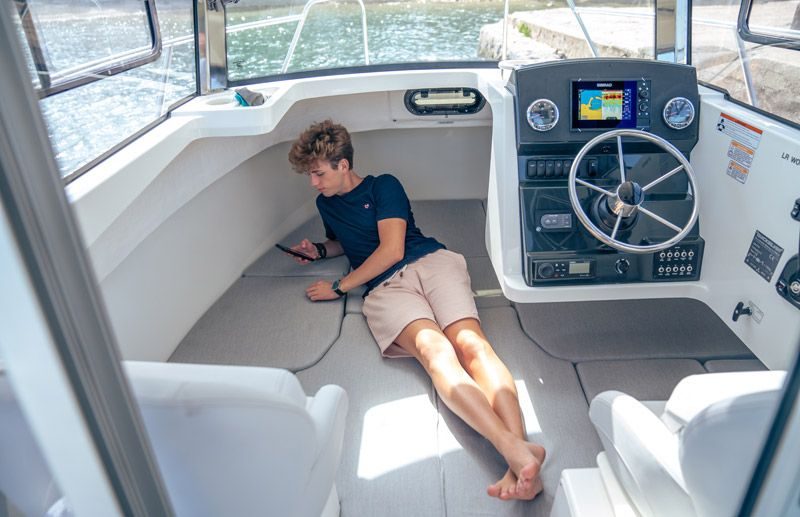 Tilbring en dag på vannet med alle fasiliteter for å holde deg komfortabel – en kjøleskapsskuff for drikke og snacks, innendørs og utendørs sitteplasser, og fasiliteter for når naturen krever det. Slapp av på dekk med et bord som trygt stues når det ikke er i bruk, sitteplasser akter og et benkesete som kan legges ned på babord side. Ikke la dårlig vær holde deg ved kaien, med konvertible kabinseter som inkluderer et tilgjengelig ekstra sete, eller konverter kabinen til soverom for en rask siesta eller en overnatting.