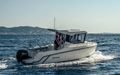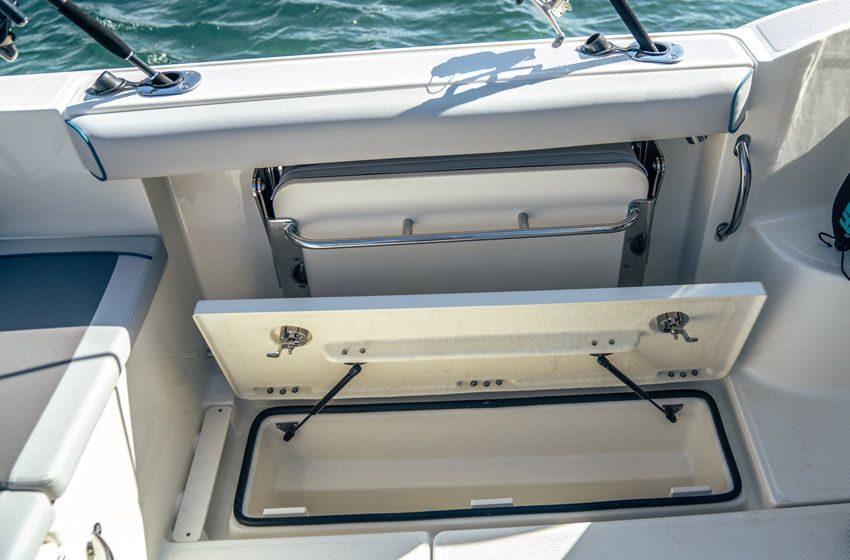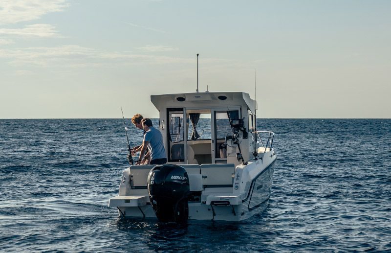 Finn fiskeplassene dine og få snørene dine våte tidligere med tilgjengelig GPS NSS evo3 i kabinen, og finn deretter fisken fra samme Simrad-elektronikk ved det andre førermiljøet på dekk. Skinnemonterte fiskestangholdere lar deg hvile armene mens du drar inn fisken, og den tilgjengelige fiskepakken holder agnet friskt i en integrert agnbrønn samt et ubehandlet vannutløp når du rensker fileter. Eller hold fisken fersk til du kommer til kai med to massive fiskekummer.