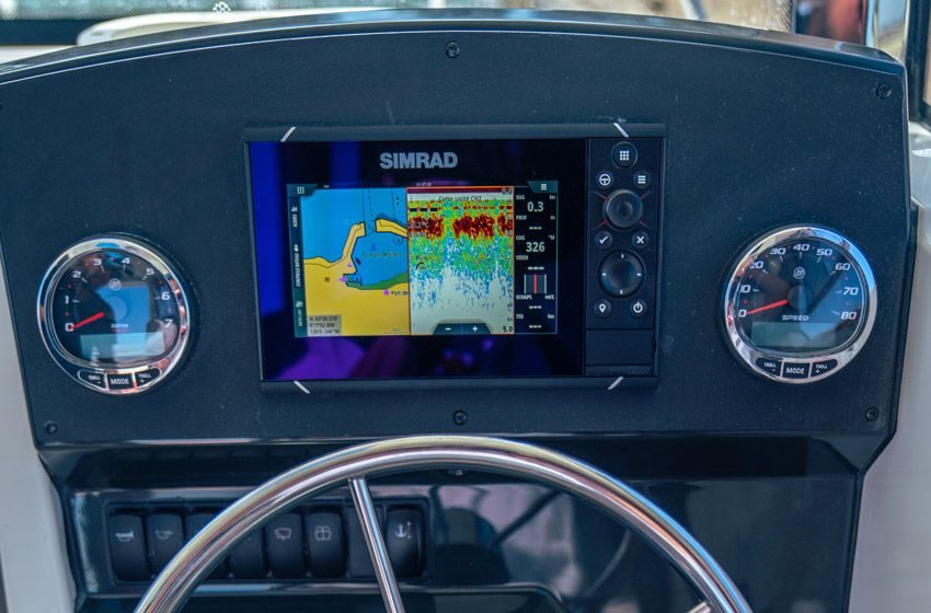 - Simrad Gps/kartplotter 7″ NSS Evo3 med HDI-giver montert i cockpit