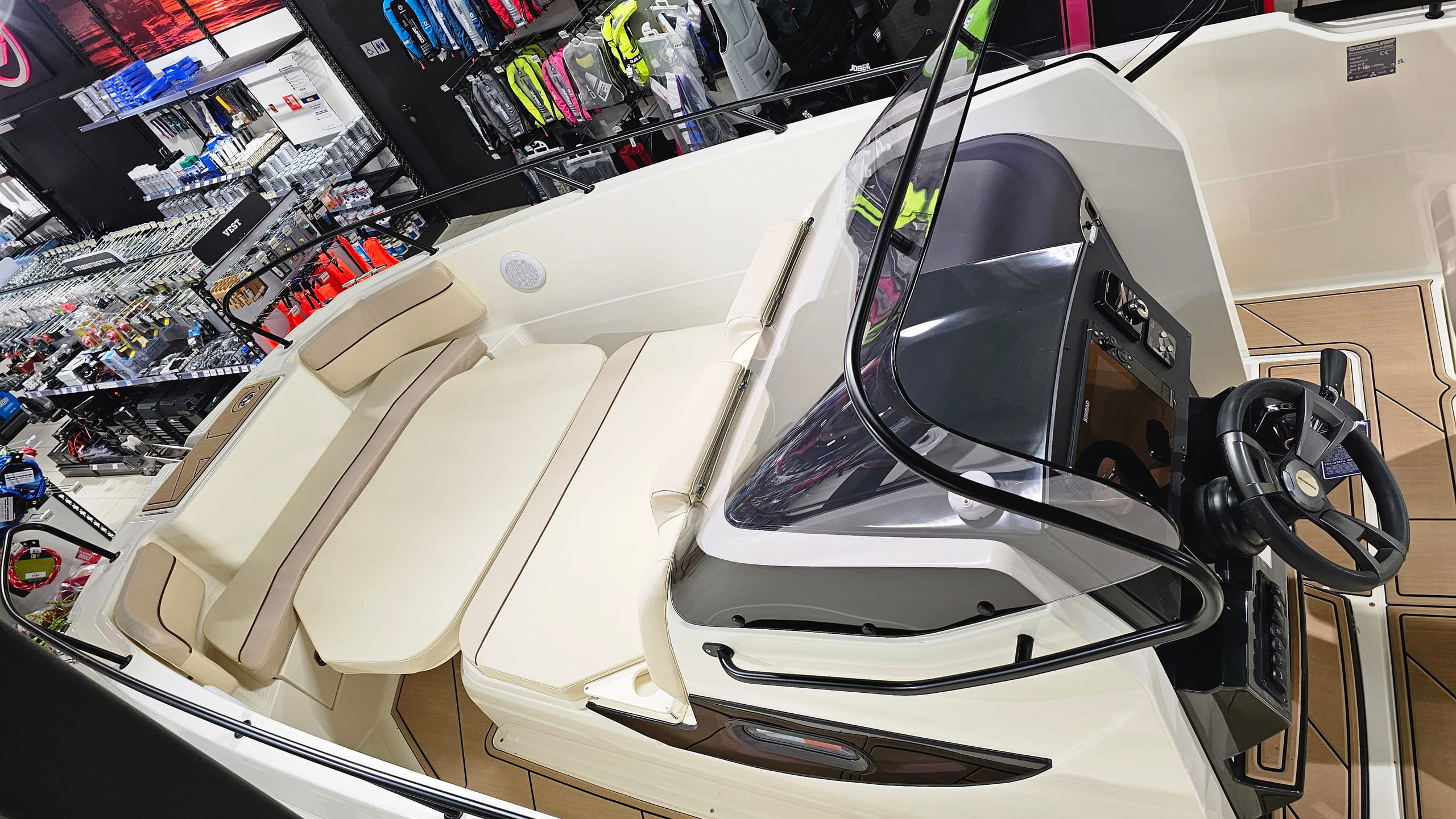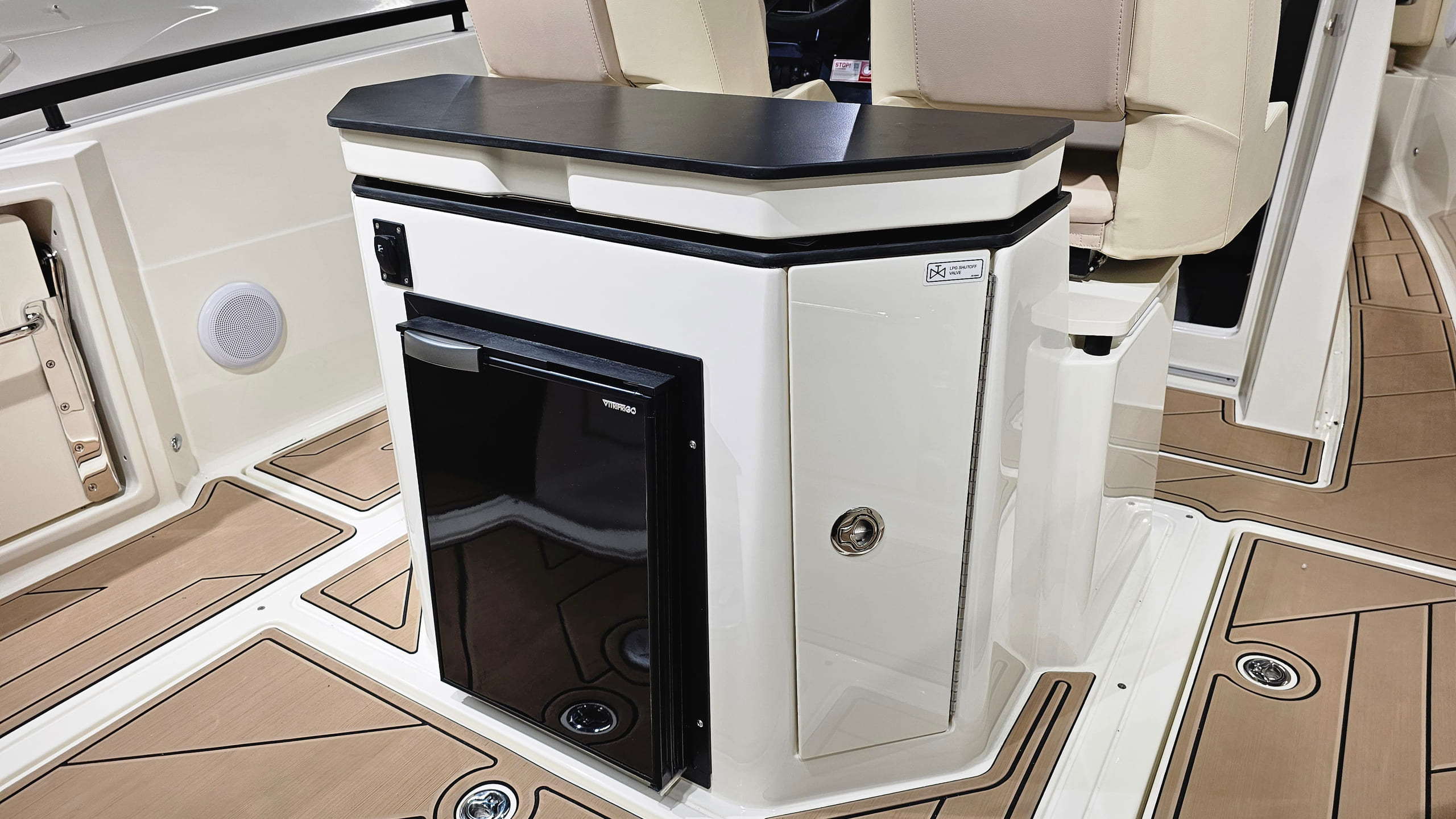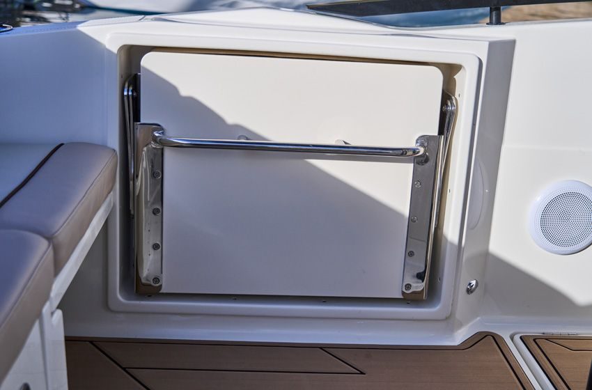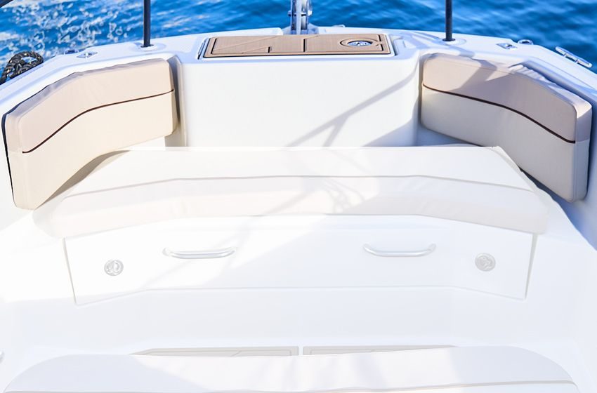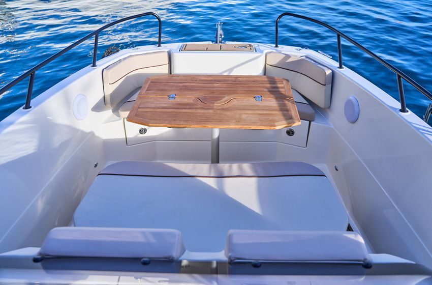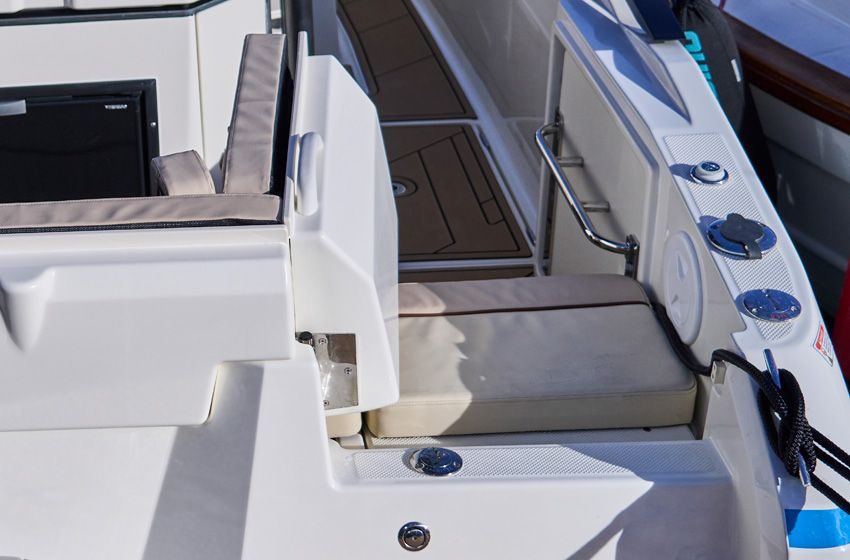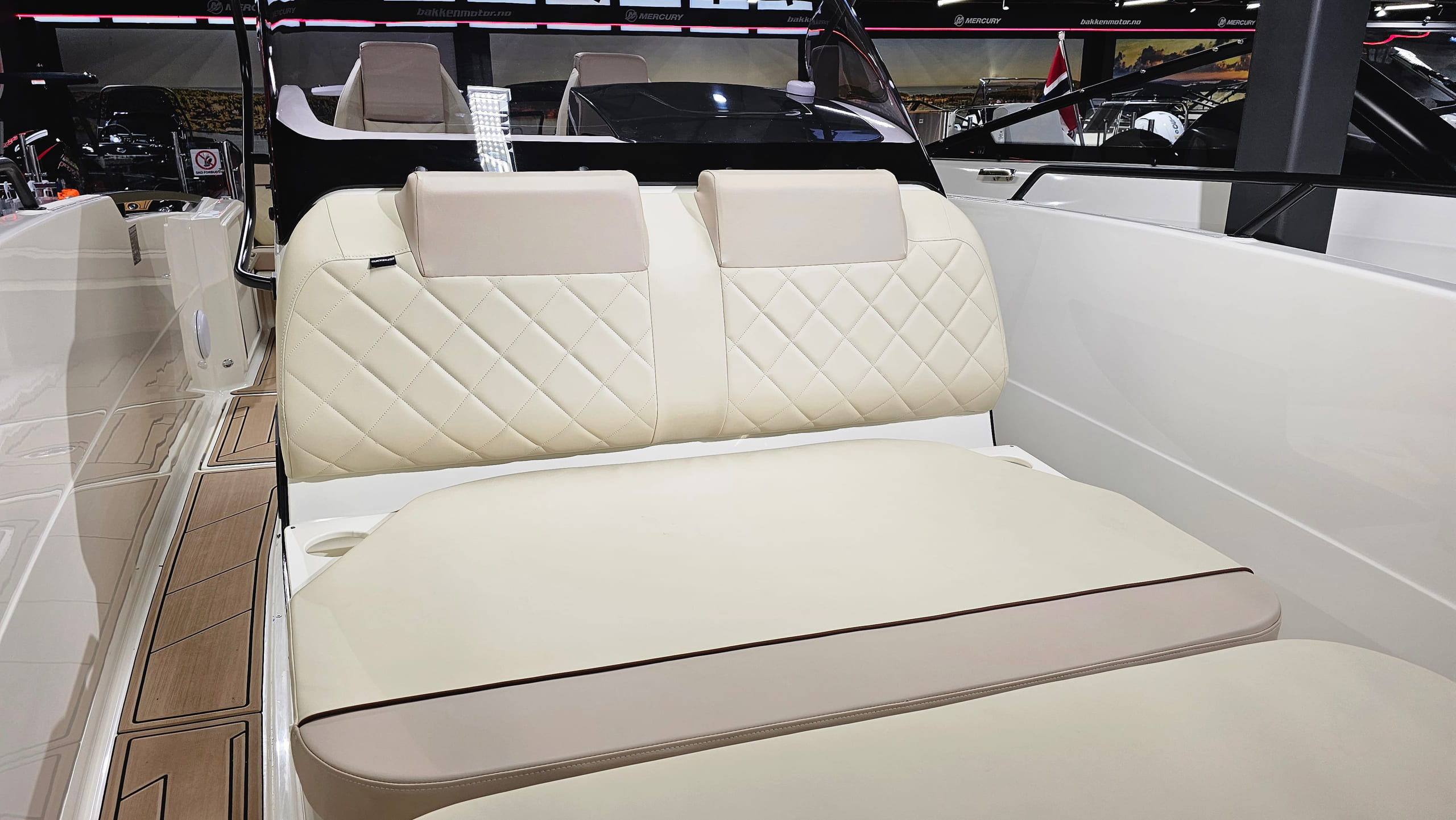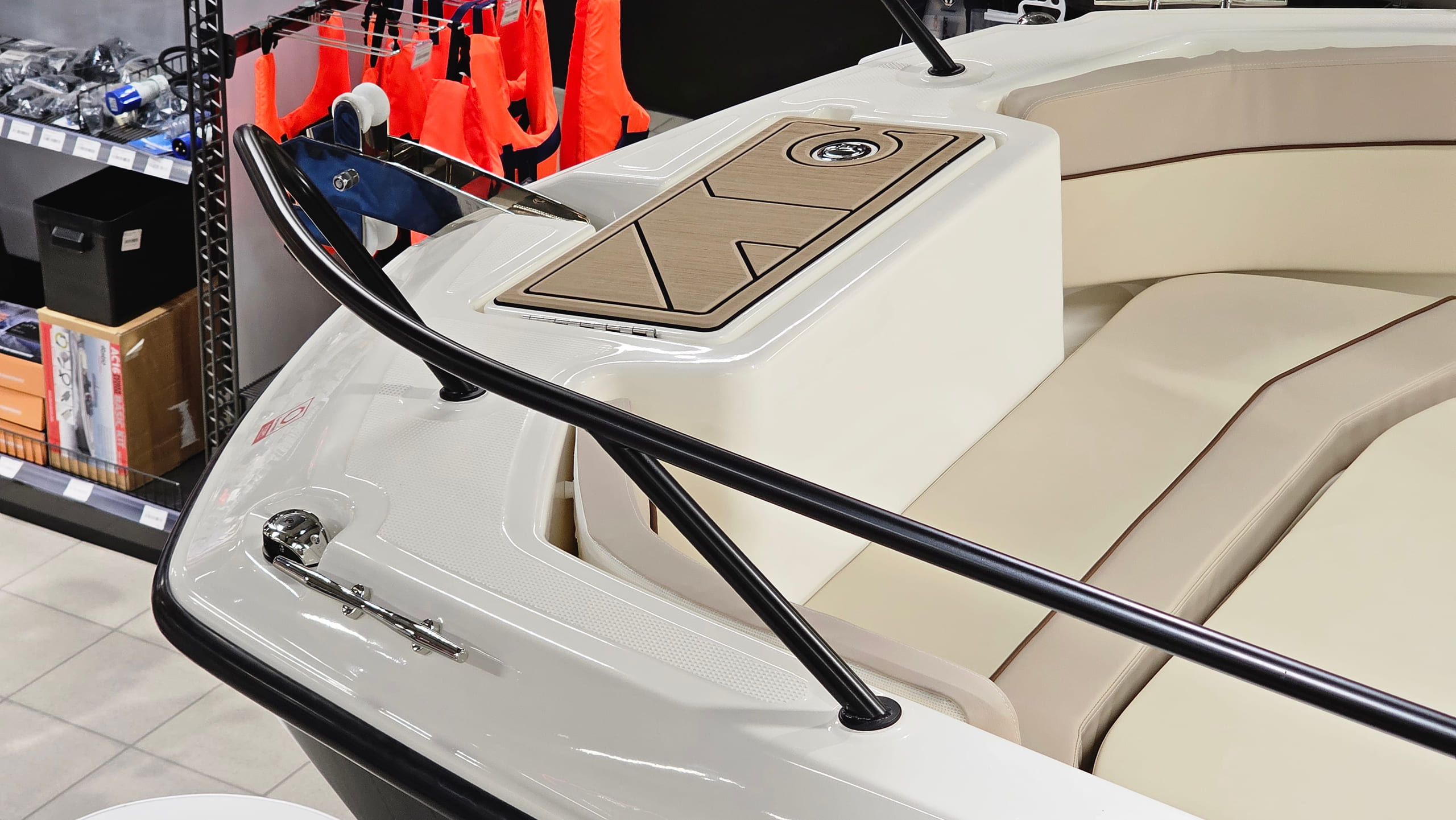 Tilgjengelige fiskefokuserte funksjoner inkludert T-top, eget stort rom til agn og svarte baugskinner.