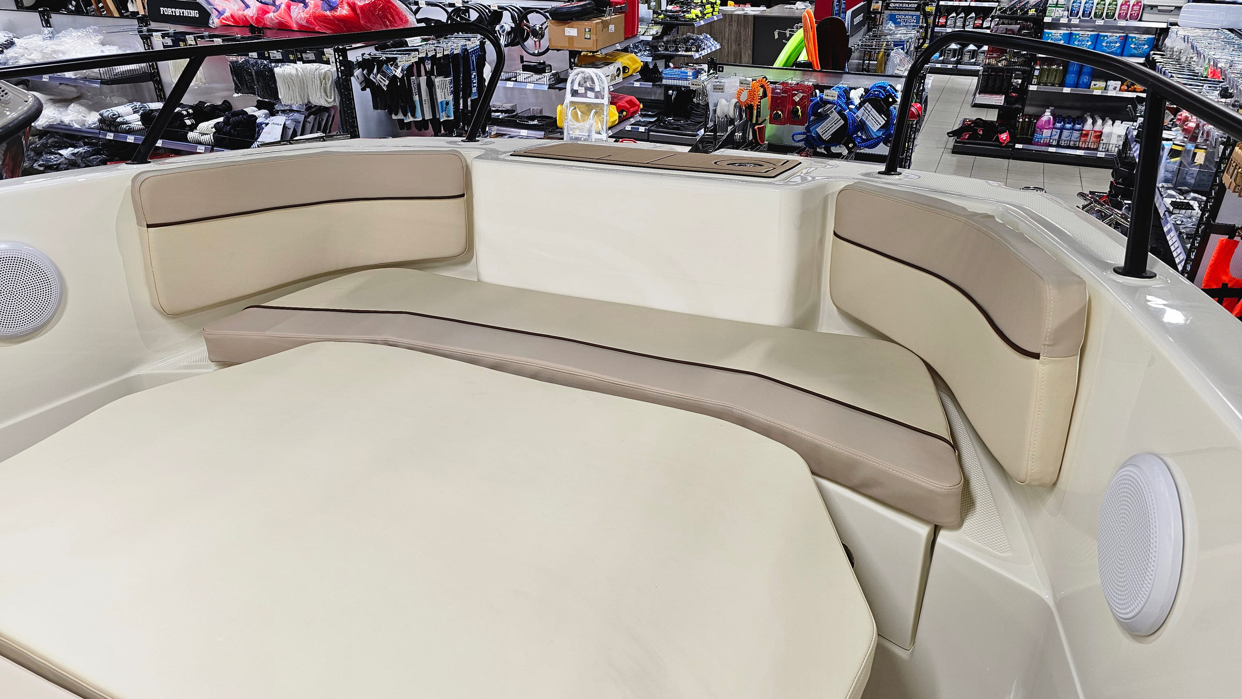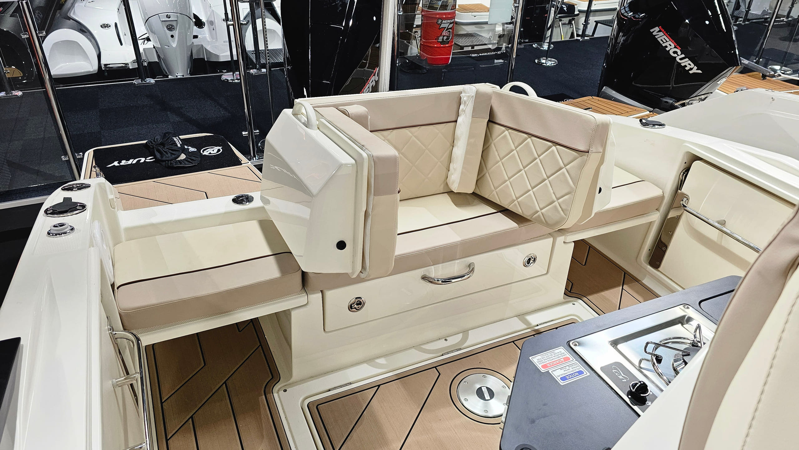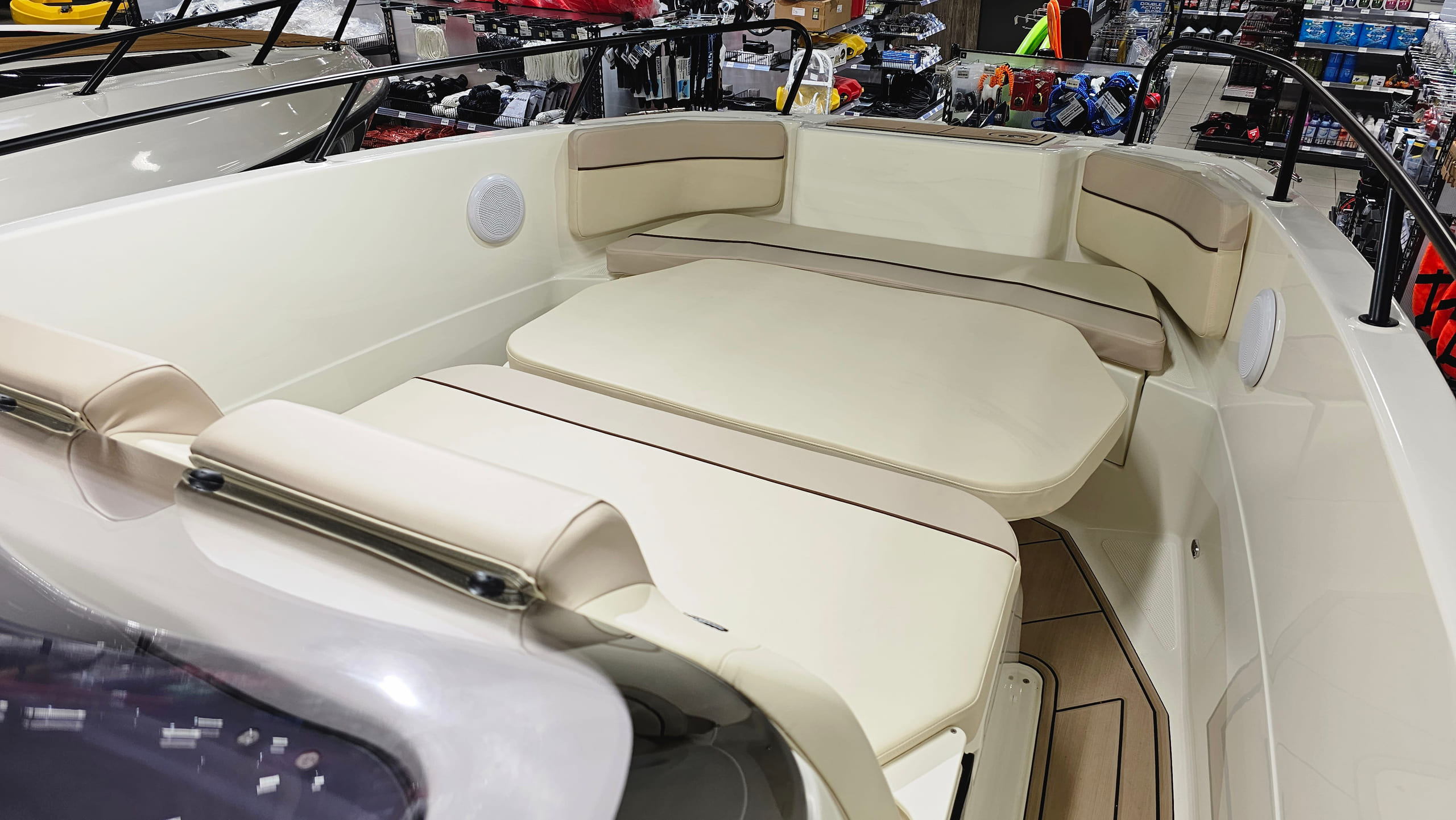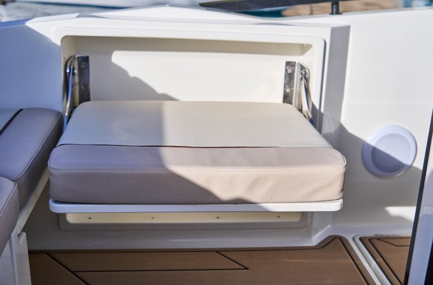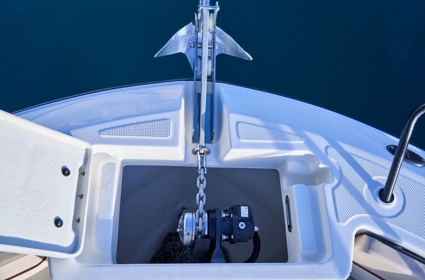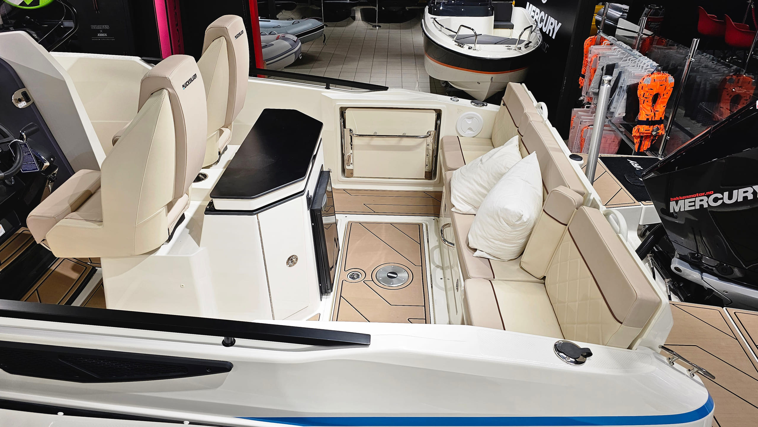 Tilgjengelige fiskefokuserte funksjoner inkludert T-top, eget stort rom til agn og svarte baugskinner.