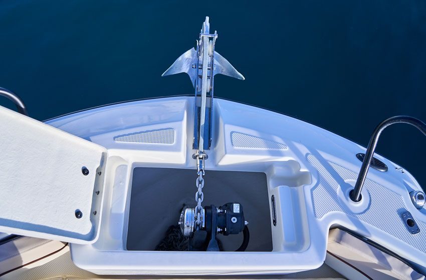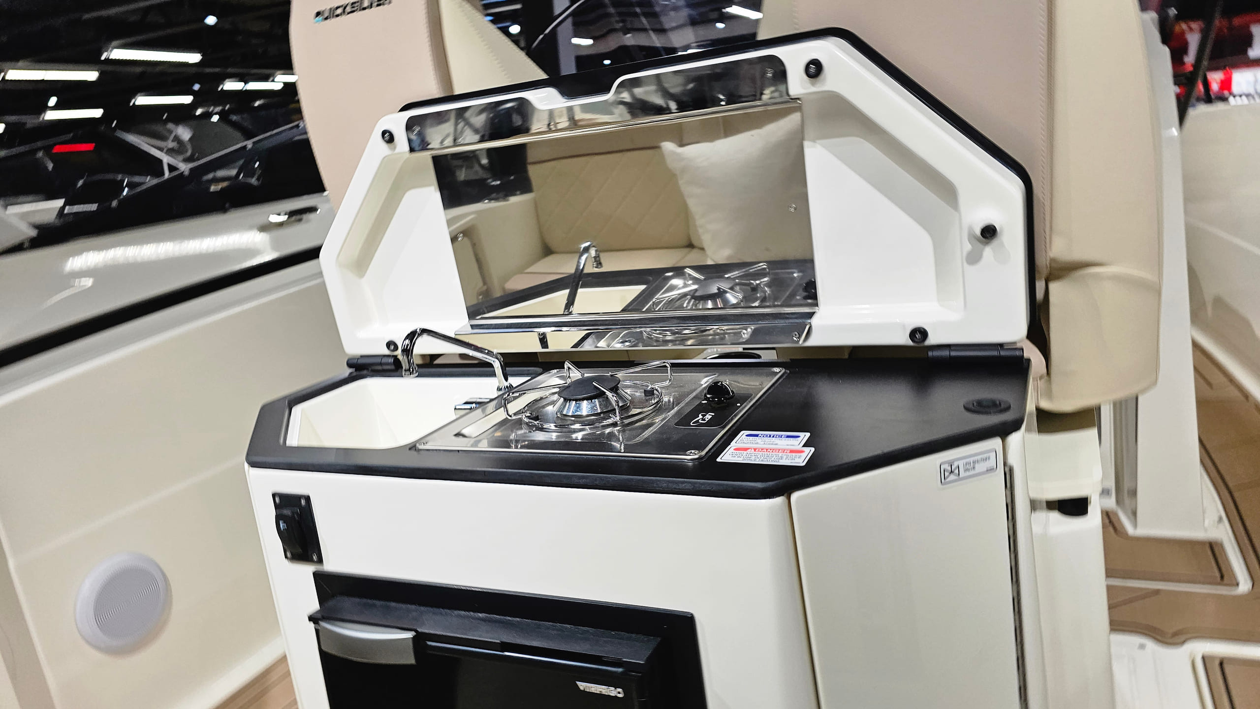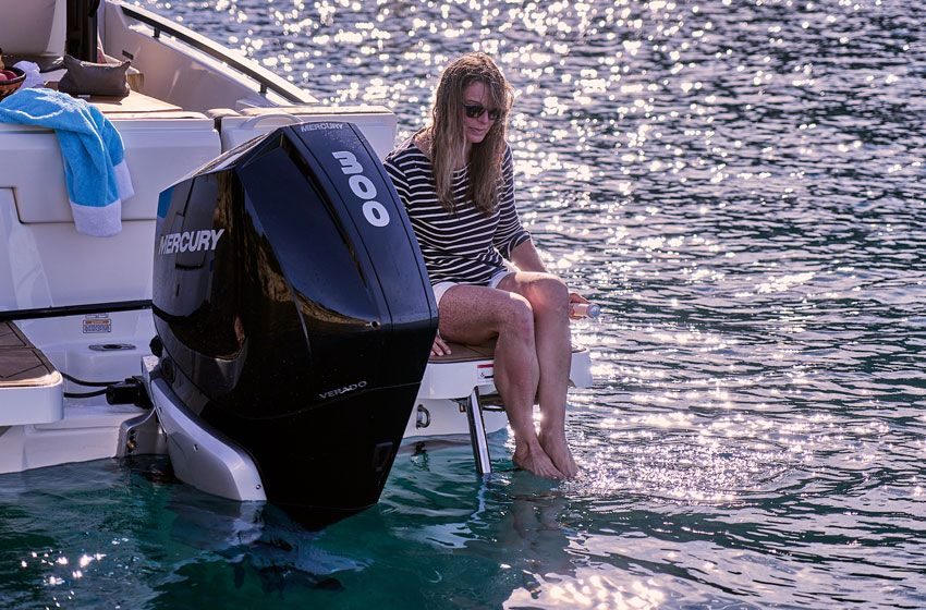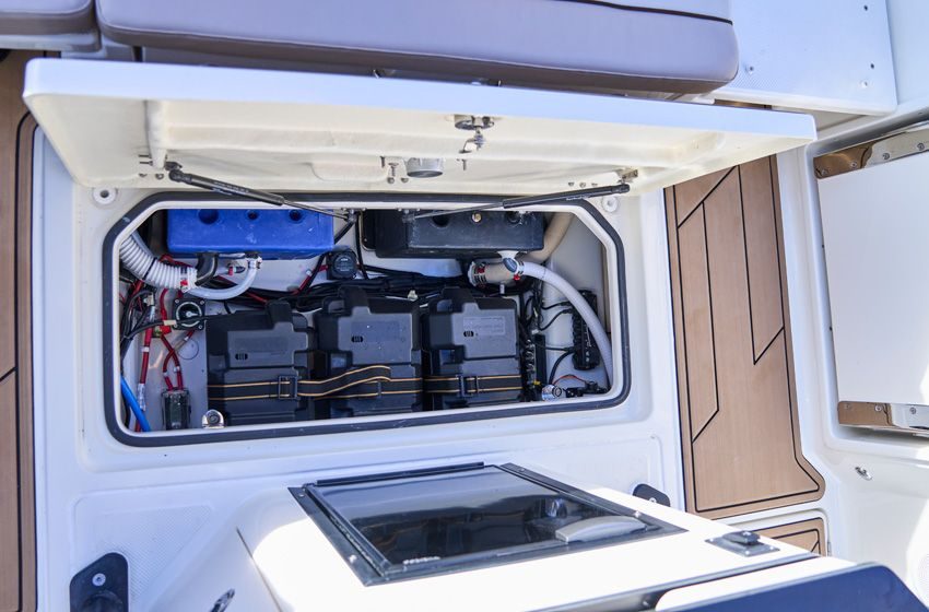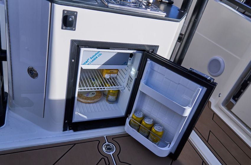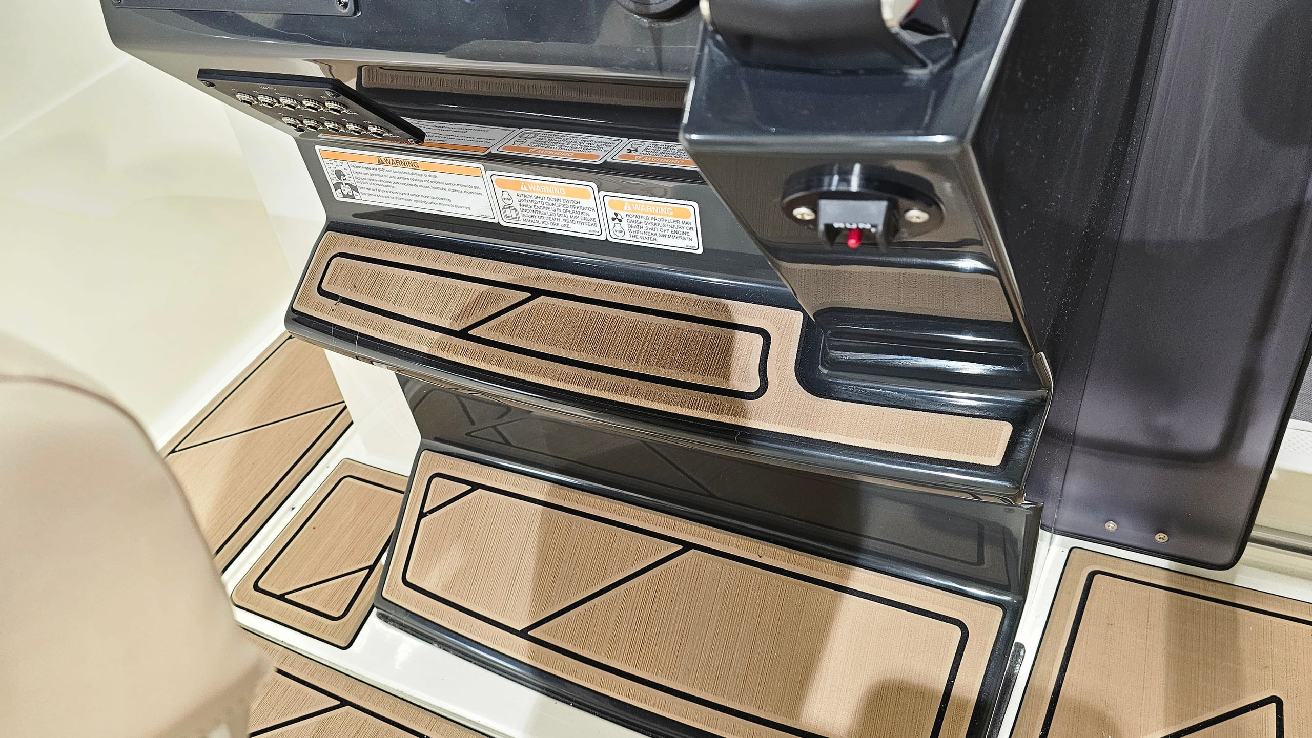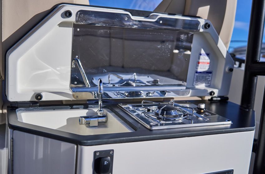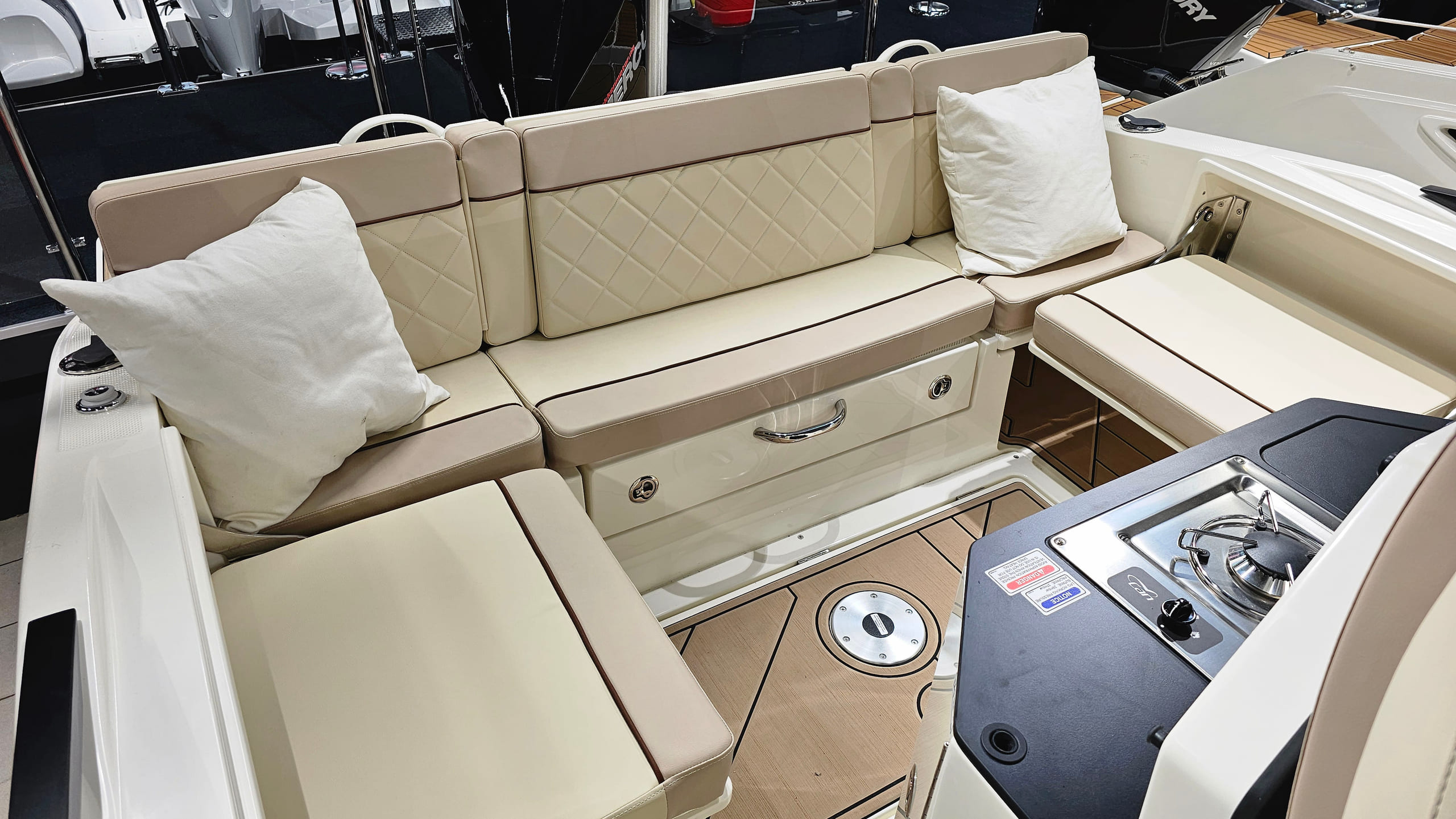 Tilgjengelige fiskefokuserte funksjoner inkludert T-top, eget stort rom til agn og svarte baugskinner.
