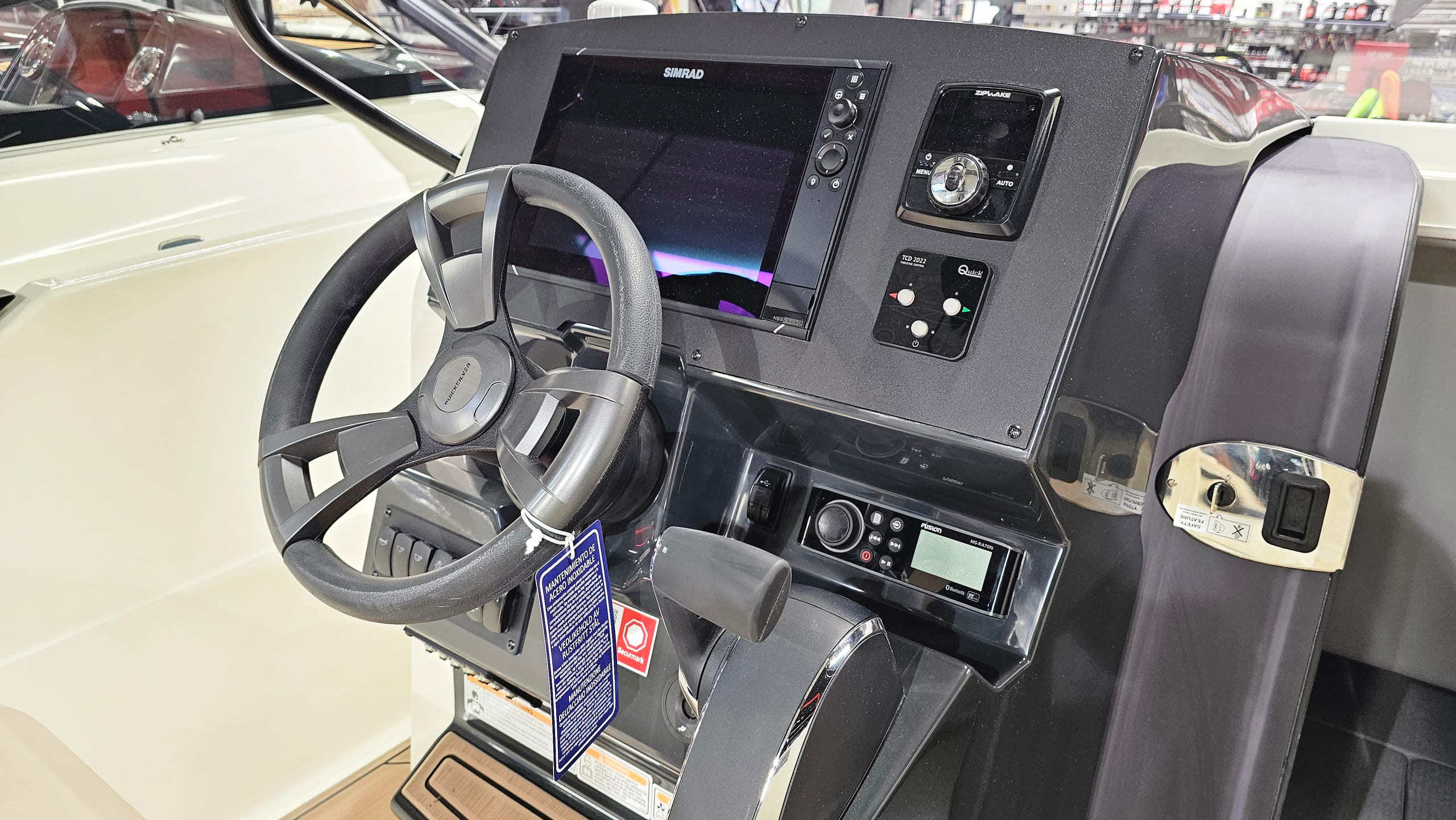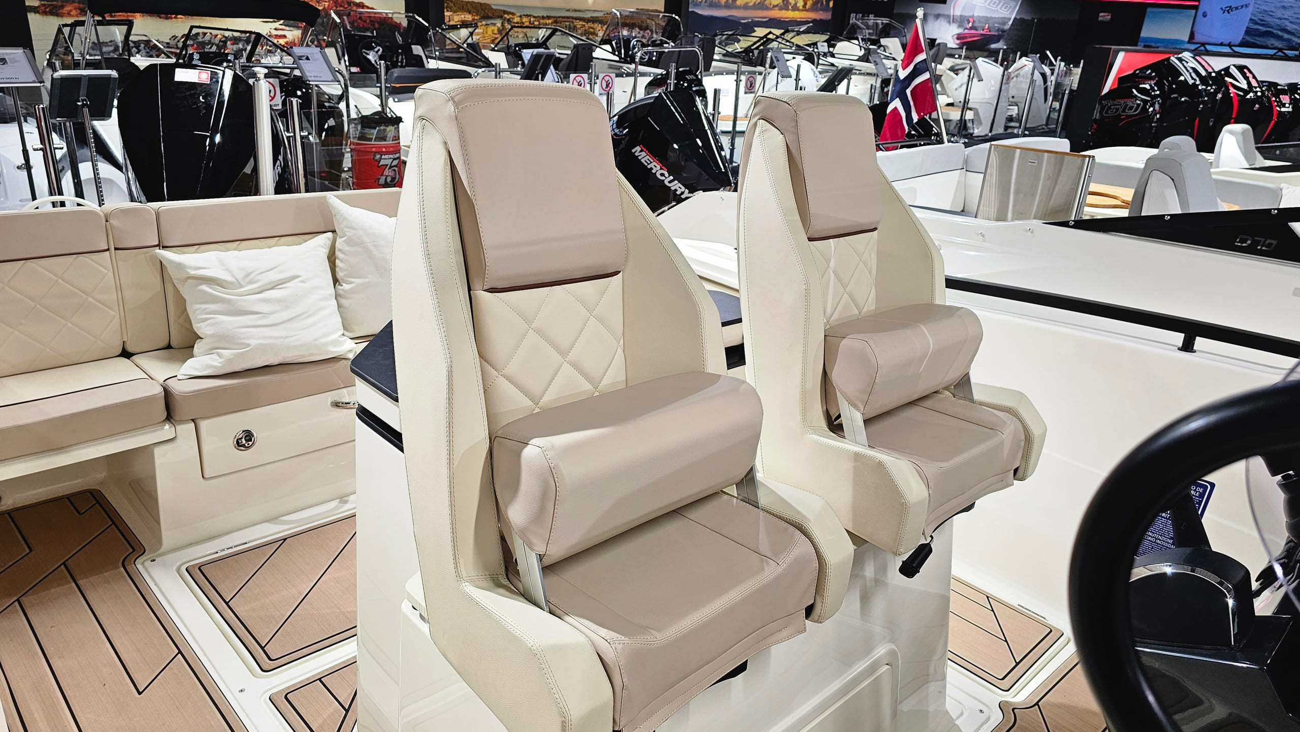 - Utvidet Elektronikkpakke med stor GPS: Simrad kartplotter 12″ NNS evo3s med HDI-giver, VesselView digital tilkobling, Fusion lydanlegg med 4 høyttalere