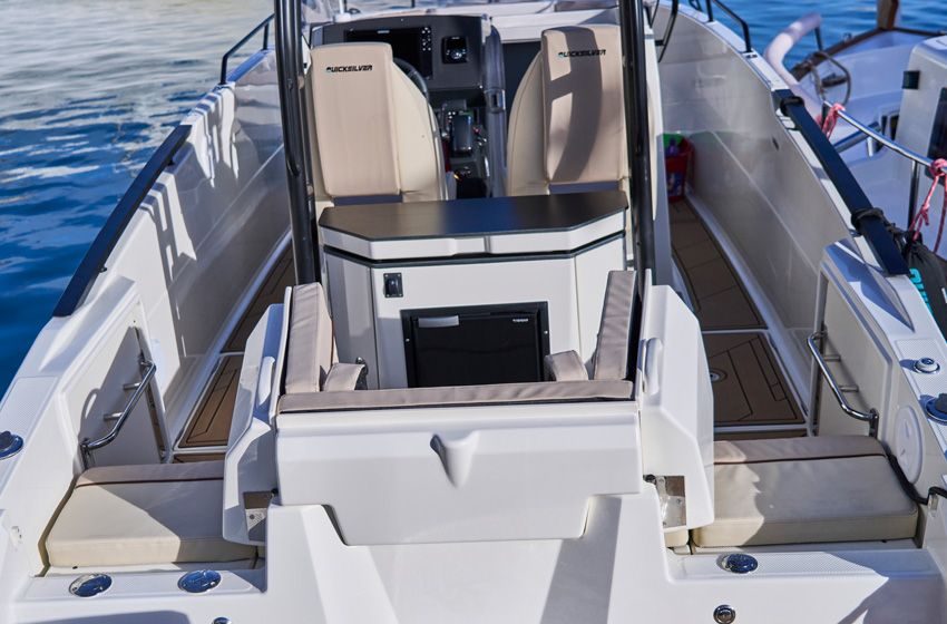 Quicksilver 805 Open gjør hver reise til et eventyr med de allsidige funksjonene for å skape et område for bevertning, en oase på vannet eller et ideelt oppsett for en fisker. Legg igjen bekymringene dine på land, kos deg, kjør komfortabelt i timevis, drevet av flere forskjellige enmotors konfigurasjoner på opptil 300 hk.