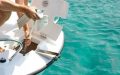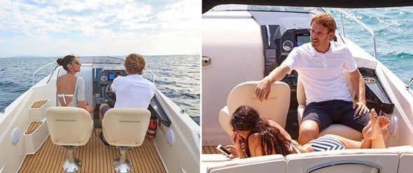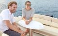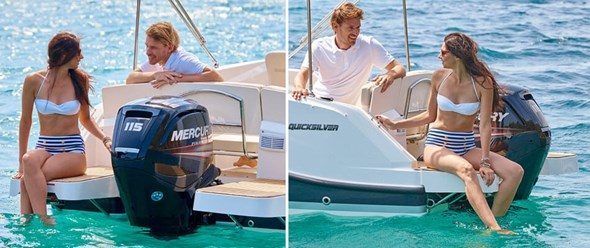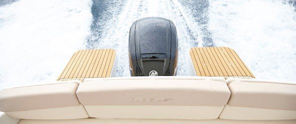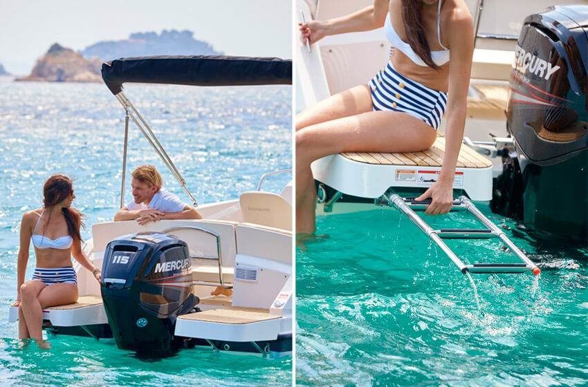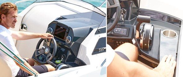 Det er lett og trygt å kjøre en båt som er utstyrt med hydraulisk styring, har støtte til føttene og et dashbord hvor det er mulig å montere en kartplotter med syv-tommers skjerm. Du og gjestene dine beveger dere enkelt og sikkert i hele båten. Det er brede trinn til dekket forut, et effektivt antisklimønster på dørken og rekker som du kan holde deg fast i. Lyst på å bade? Bruk badeplattformen og bestill gjerne en plattform som er større så blir dukkerten enda litt bedre.