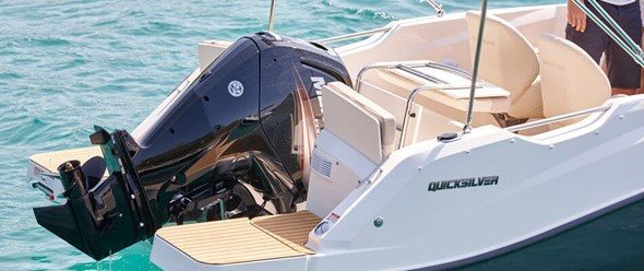 Quicksilver Activ 555 Cabin er klar. Til hva? I utgangspunktet alt – alt du trenger for å oppleve de gode stundene på sjøen. Finn deg en plass forut eller på solsengen i cockpiten, hent noe kaldt å drikke fra kjøleskapet som båten kan utstyres med og hør på favorittmusikken din som strømmer ut av musikkanlegget som kan utstyres med fire høyttalere.