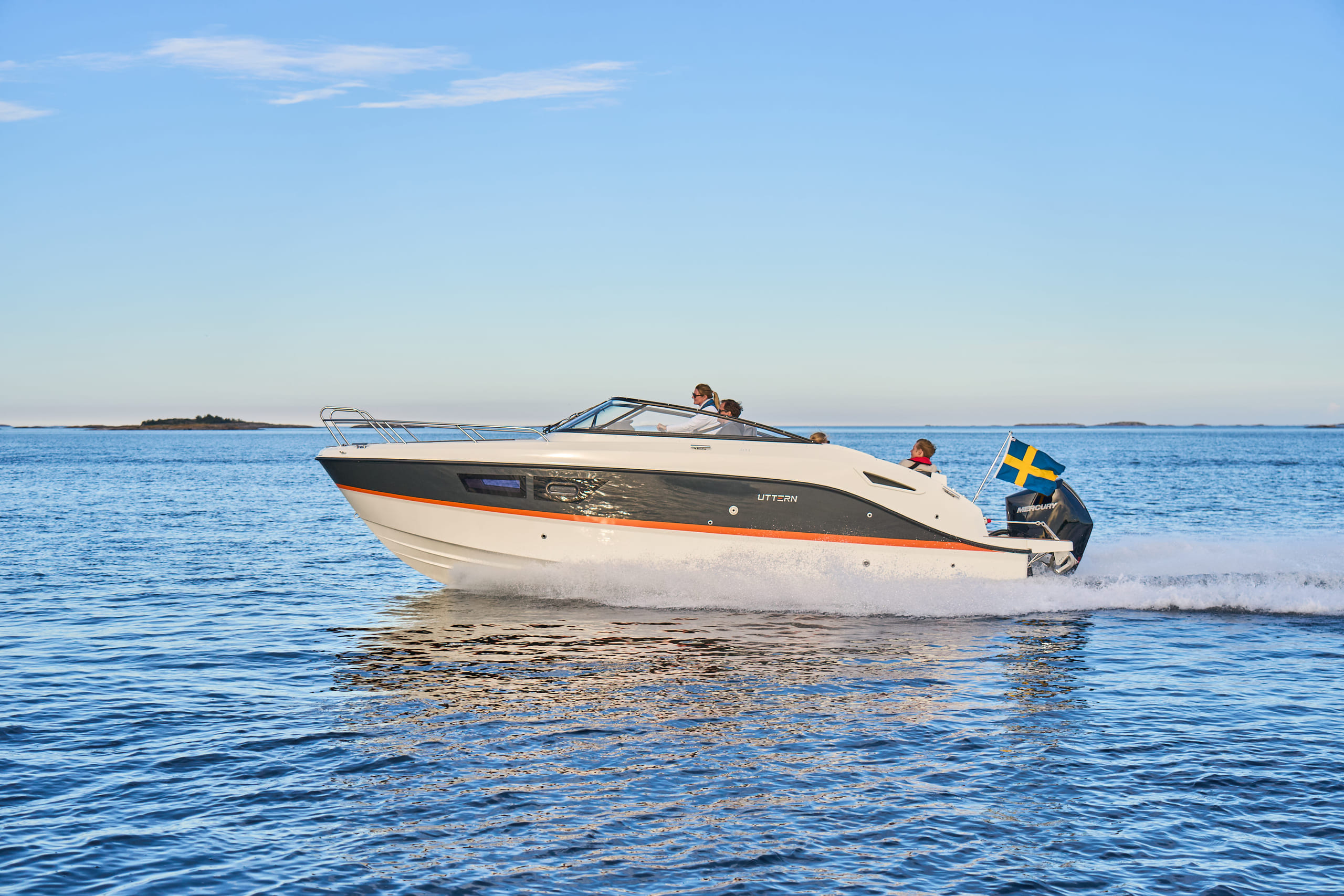 Uttern D77 er utviklet for rask og stabil cruising, tilbyr kraftig ytelse og kompromissløs sikkerhet. Navigasjonsutstyr, ergonomisk utformet pilot og passasjerseter, og romslig plass til overnatting, er noen av tingene som gjør at D77 tilbyr den komplette luksus pakke, enten det er for vannsport, øyhopping eller båtturer langs kysten. Her får du en opplevelse som få andre i klassen kan matche.