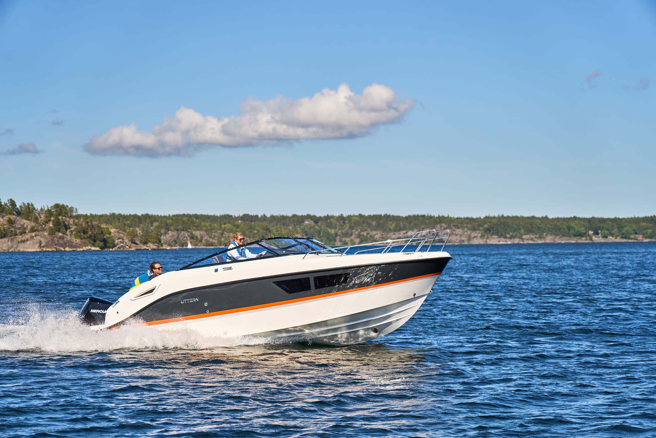 Uansett hvor du ønsker å ta deg en tur på vannet, vil Uttern D77 ta deg dit med komfort og stil. Uttern D77 har plass til ni, og opp til fire personer som kan sove komfortabelt inne i cabin. Den er ideell for både sport og fritidsbruk med familie og venner.