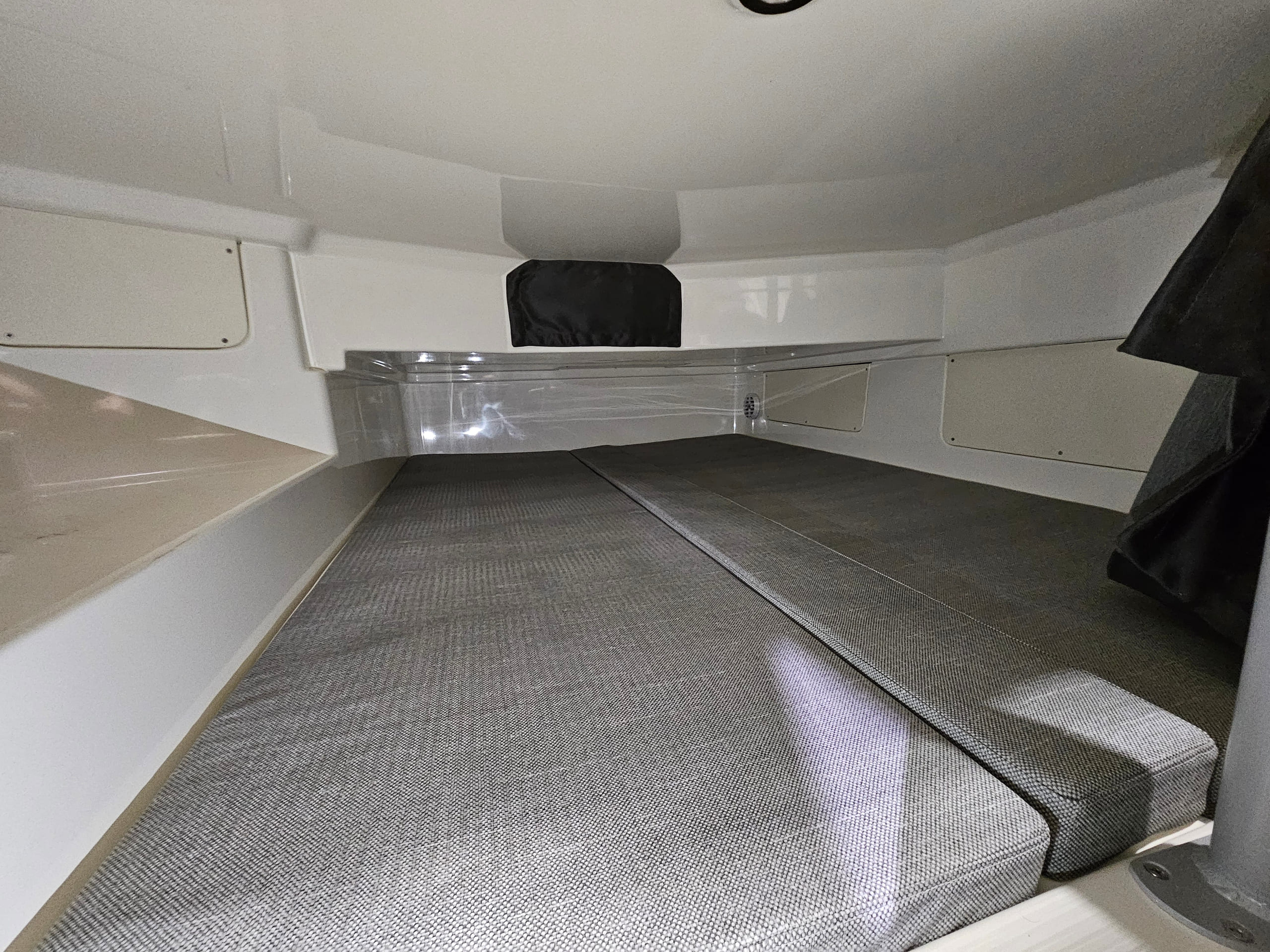 Med overnattings fasiliteter utformet for å ta i mot opp til fire voksne, har D77 en romslig og luftig dobbel seng i baugen, og en stikk køye med god plass til to. Et praktisk og romslig toalettrom med eget vindu, og en robust og praktisk bysse med kjøleskap, ferskvann og komfyr. Interiøret er innredet med eleganse og stil, og med øye for detaljer i alle deler av båten.