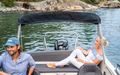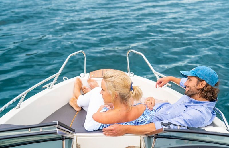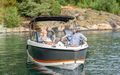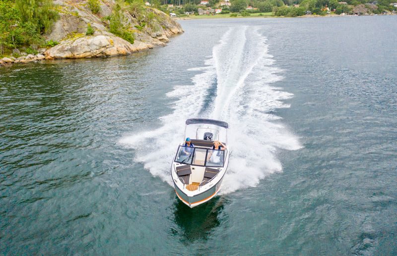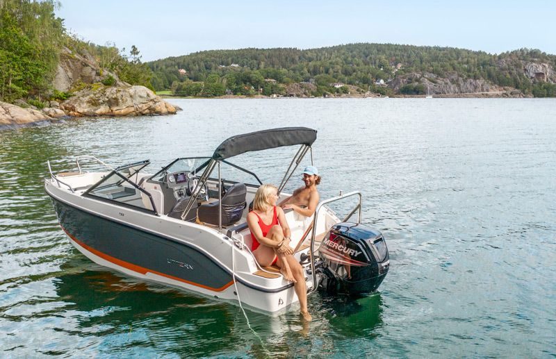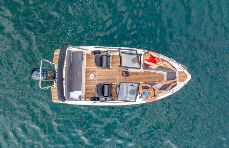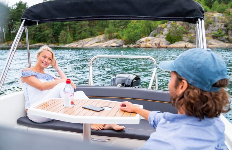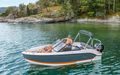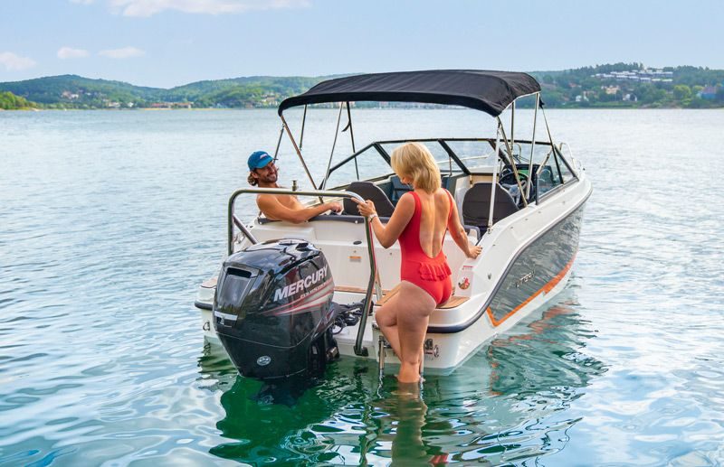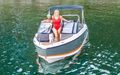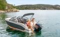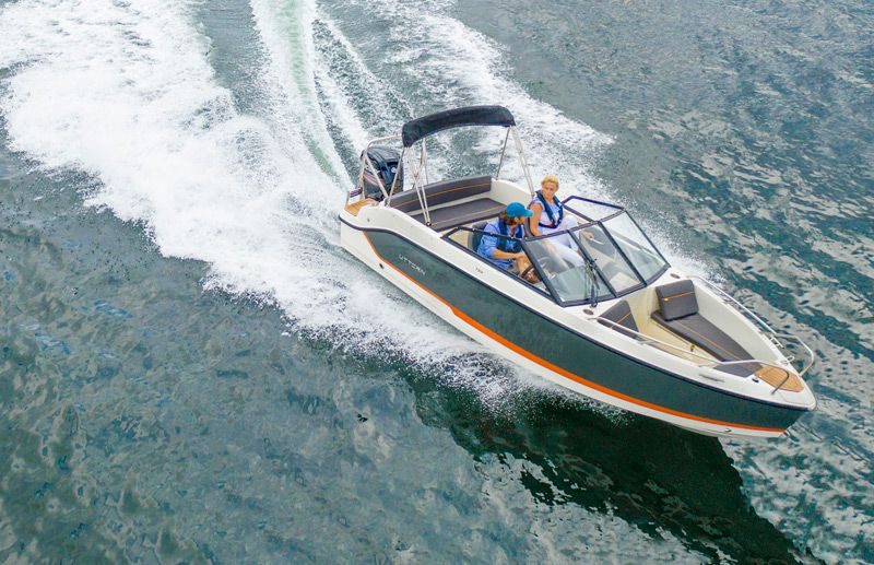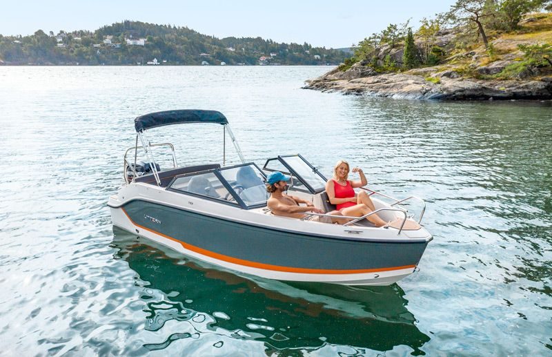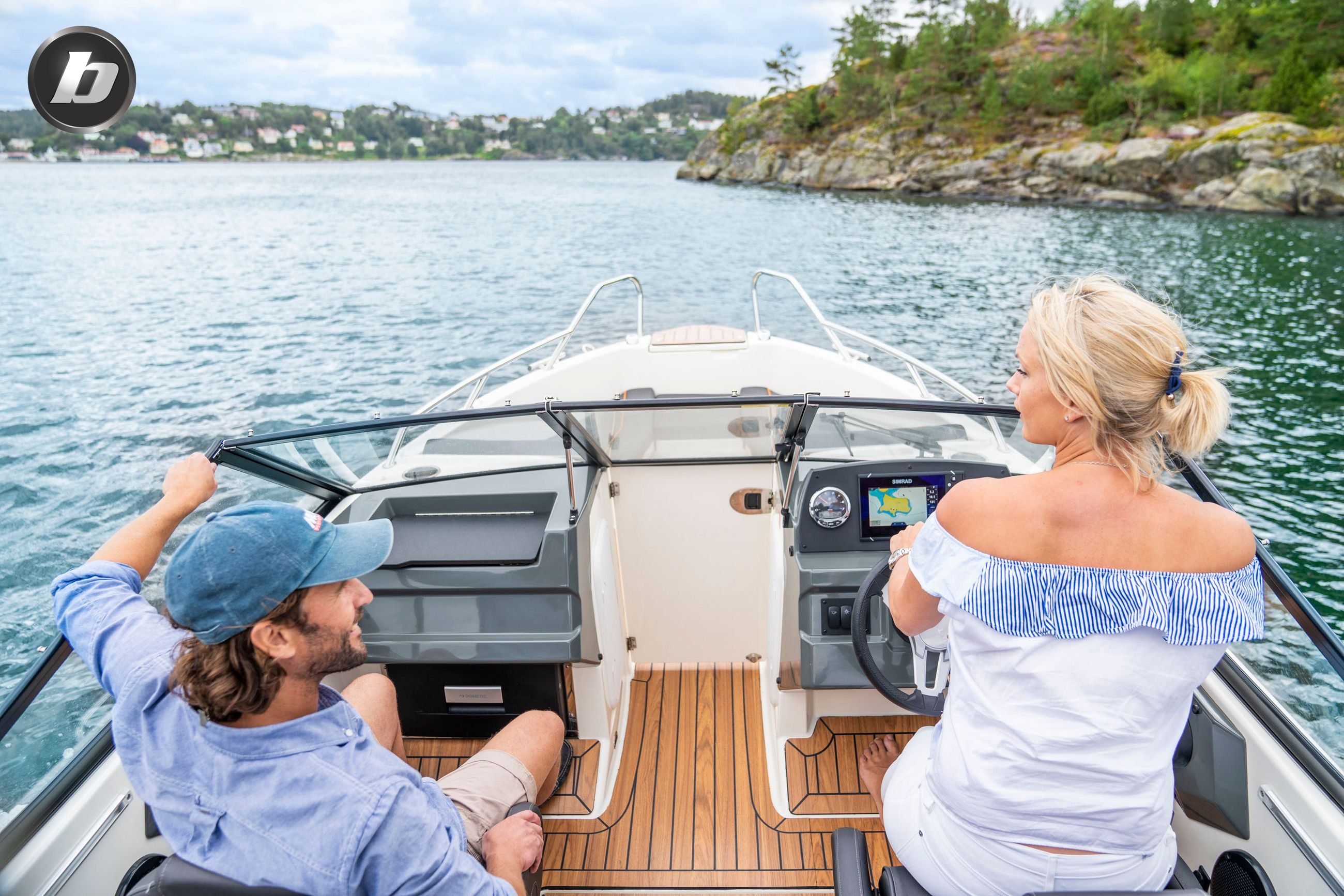 - En opplevelse av fullstendig sikkerhet med et dypt cockpit-område, høye fribord, stilige baugrekker og et praktisk trinn på motorbrønnen. Barn og voksne vil alltid føle seg trygge enten de sitter eller beveger seg rundt i båten, og et klart definert avstigningsområde sørger for enkel tilgang til og fra land.