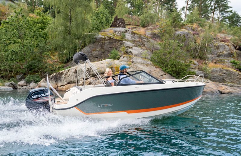 Den elegante og moderne Uttern T53 ønsker både vannsportentusiaster, folk som liker å feste og solelskere velkommen. Ved akter ruver en stilig slepebøyle for vannski (ekstrautstyr) over en kraftig og pålitelig Mercury påhengsmotor. For Uttern bowridere er allsidighet en selvfølge.