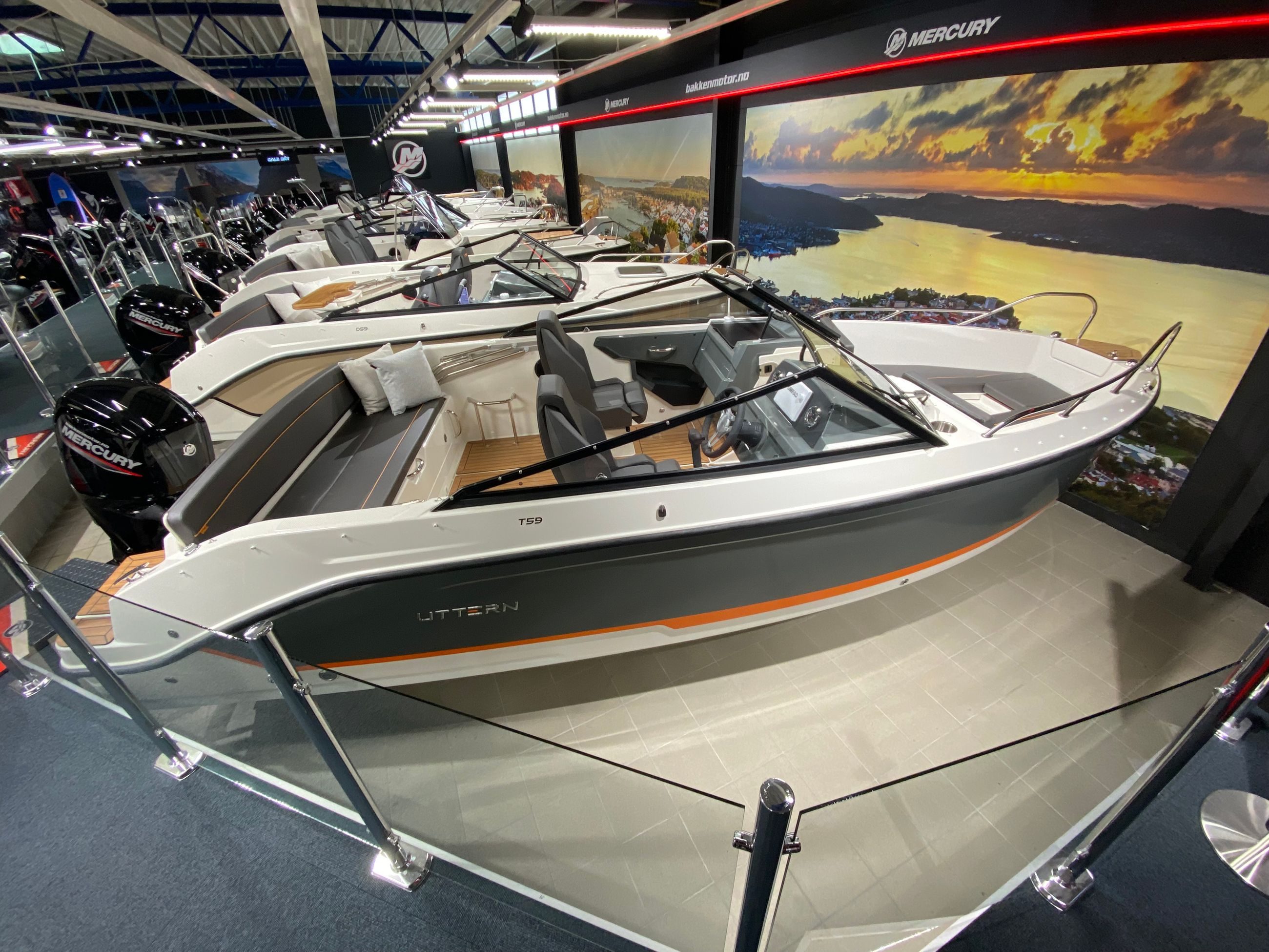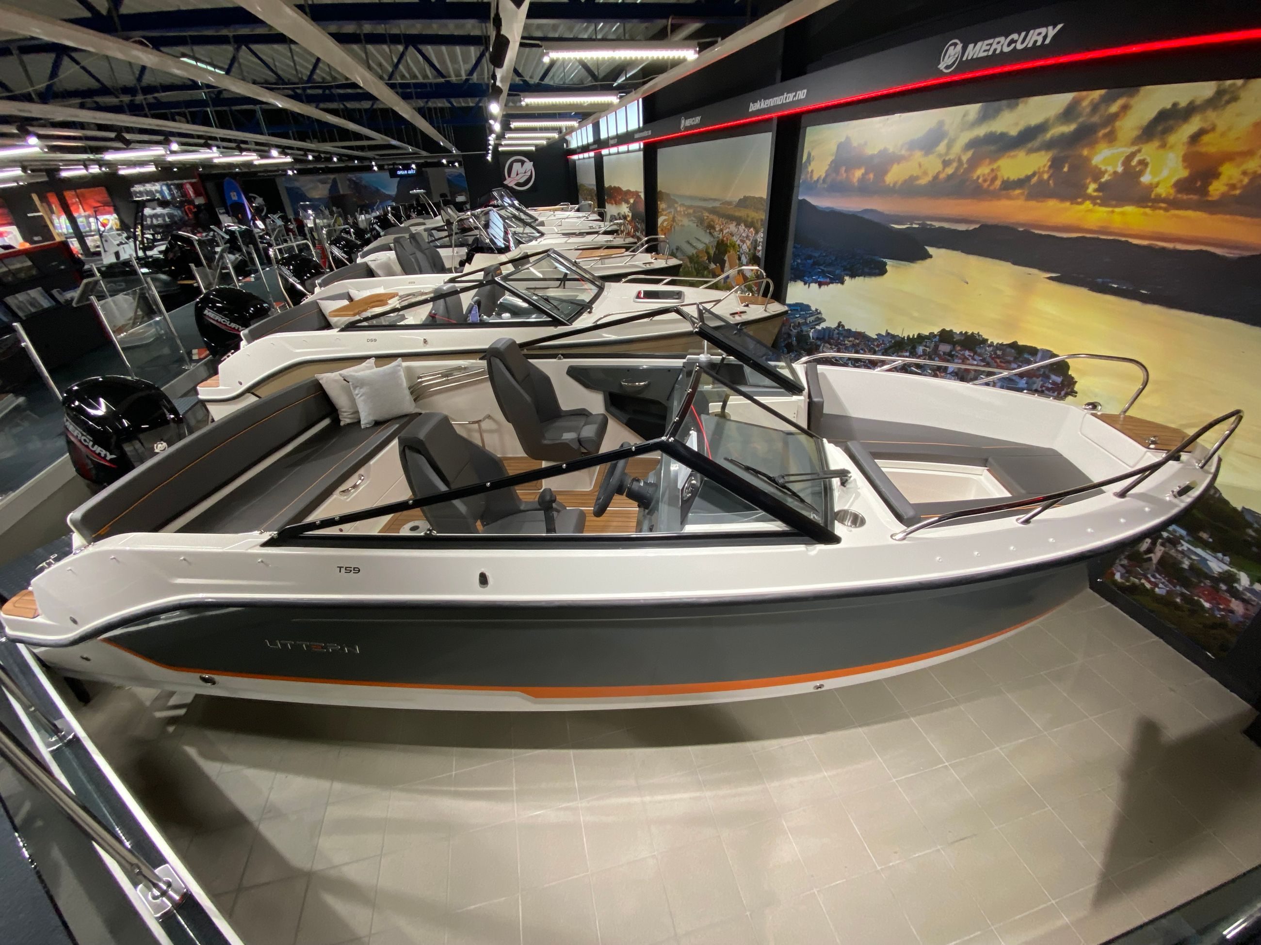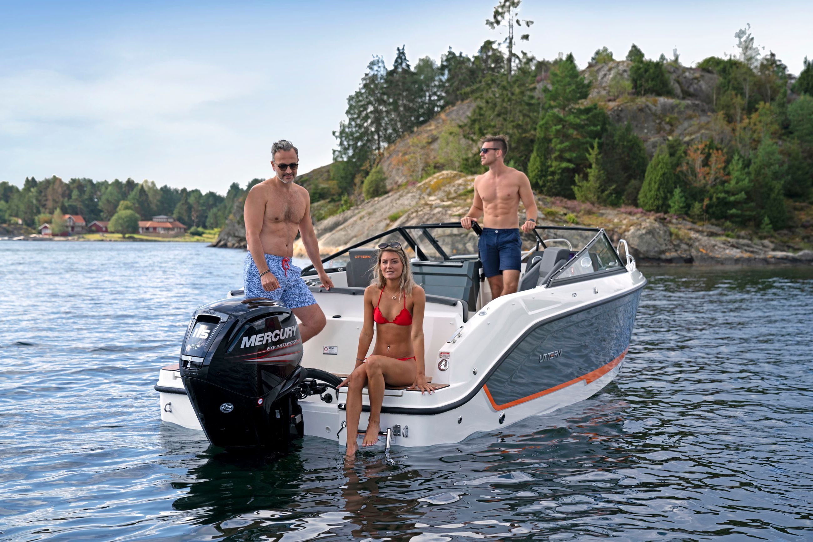 Uttern T59 har plass til seks personer. Er solslikking det viktigste for mannskapet ditt? Du kan omgjøre både baugen og cockpit til romslige solsenger. Det nye solsengsystemet i baugen er enklere å sette opp og har ingen løse deler. Foretrekker du fart og spenning? Da kan du gå for vannskistang for vannski eller wakeboard (opsjon). Med en Mercury-motor med opptil 150 hk blir dagene fulle av begeistringer.