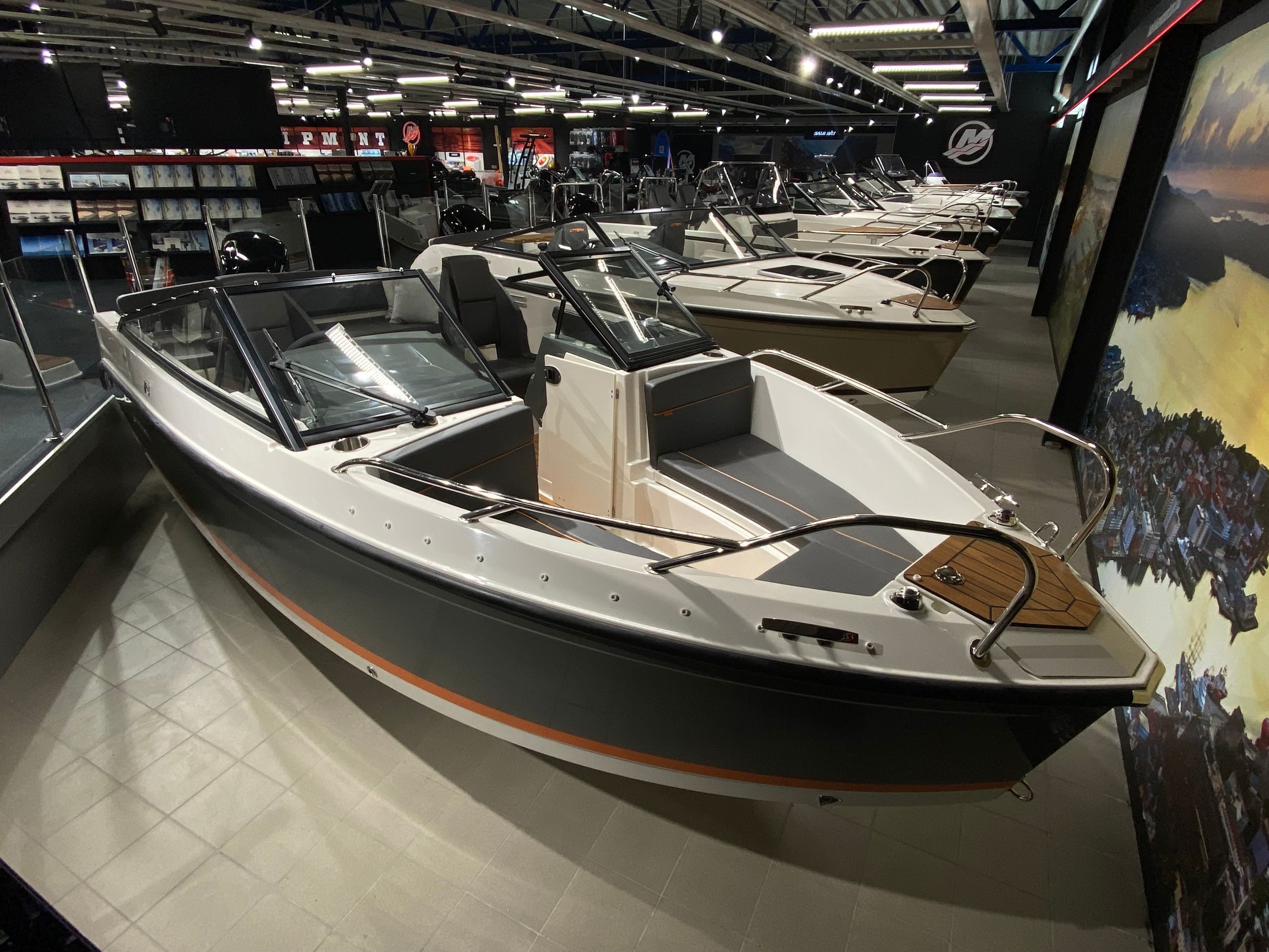 Du finner oppbevaring for småting foran passasjersetet i tillegg til et oppbevaringsrom integrert i konsollen. Oppbevaringen for fendere er nå ved fribordet, så du behøver ikke lenger åpne alle oppbevaringsrommene for å lete etter fendere i siste liten.