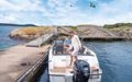 - Du og de du er glad i kan føle dere trygge i en båt som setter sikkerhet på første rekke. Den har en dyp cockpit med en stor beskyttende rute, kombinert med solide håndrekker og sklisikring. Alt dette for at kosen skal stå i fokus