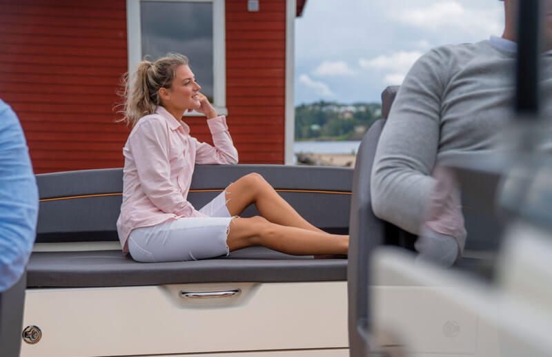 - Et allsidig cockpit-område tilpasset humøret. Enten du har lyst til å cruise, sosialisere eller nyte et måltid i solen, kan cockpiten gjøres om til ditt favorittoppsett på få minutter