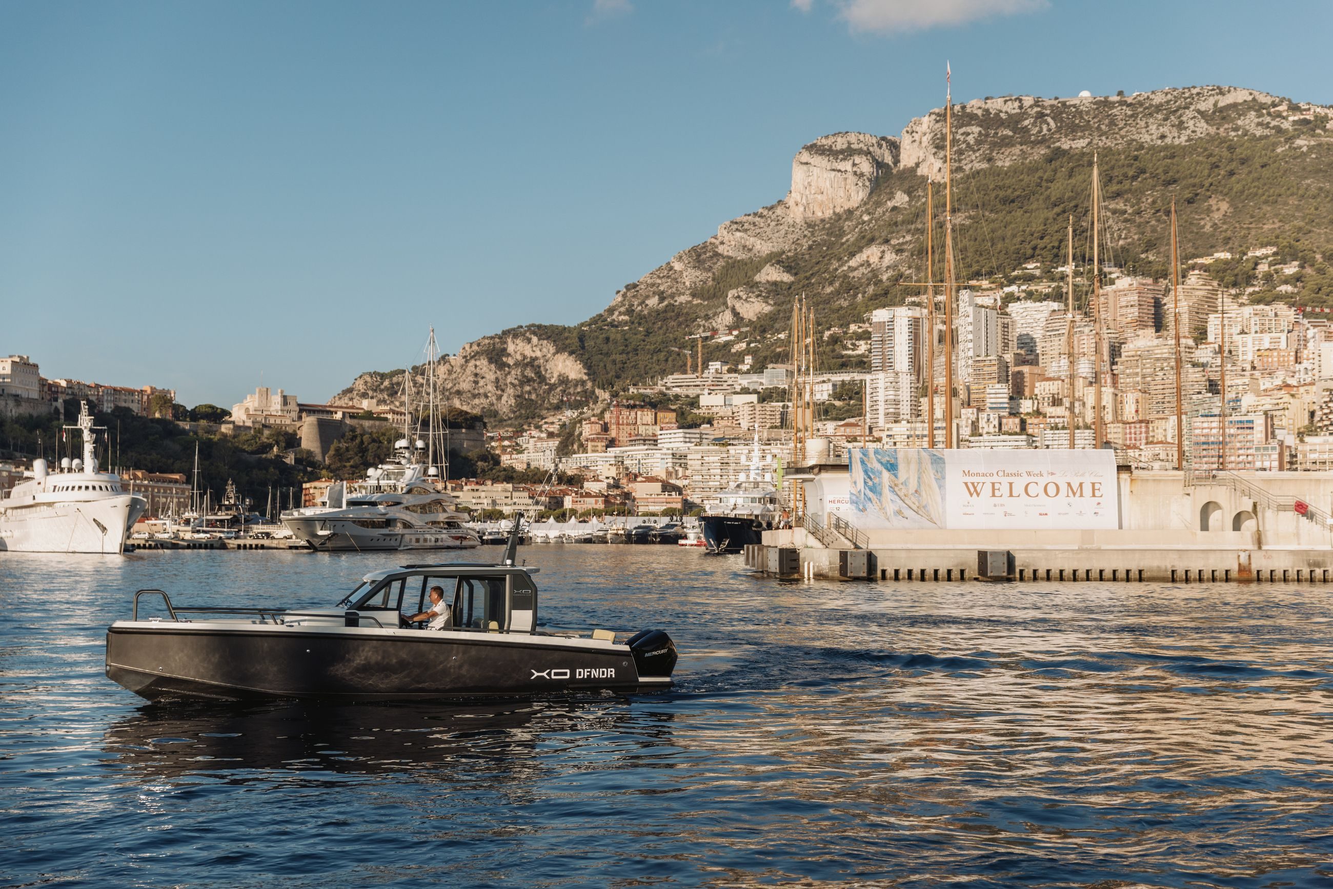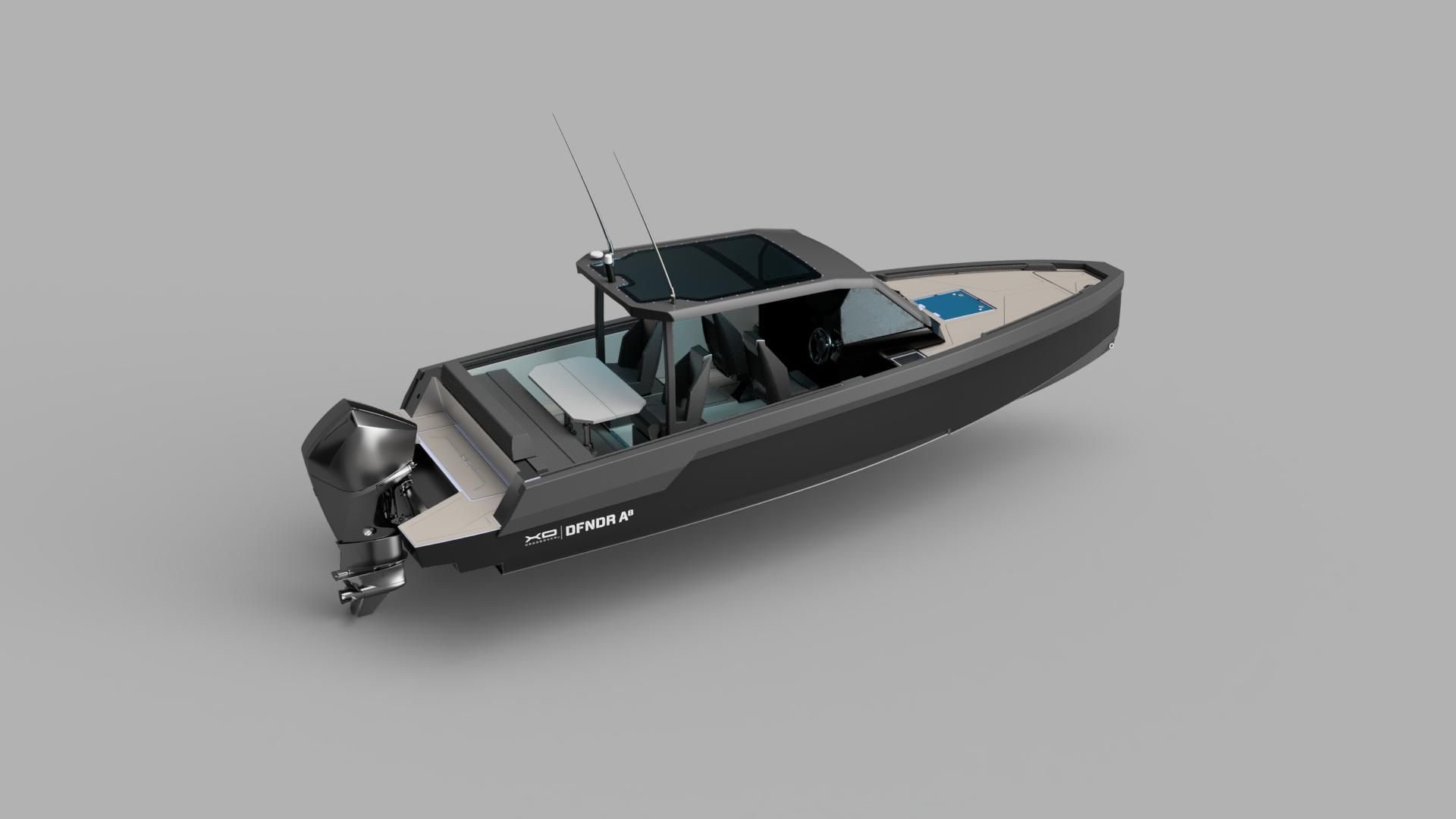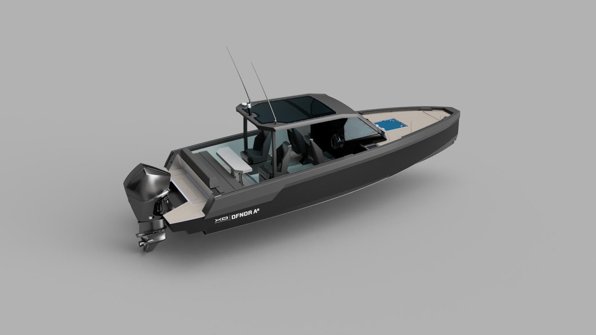 XO DFNDR A8 ble lansert i Cannes yachting Show 2023, og er en moderne walkaround-båt med panoramasoltak. Denne båten markerer en ny milepæl i XOs produktutvikling ved å være den første full aluminium XO, samtidig som den har det beste forholdet mellom pris og kvalitet.