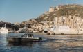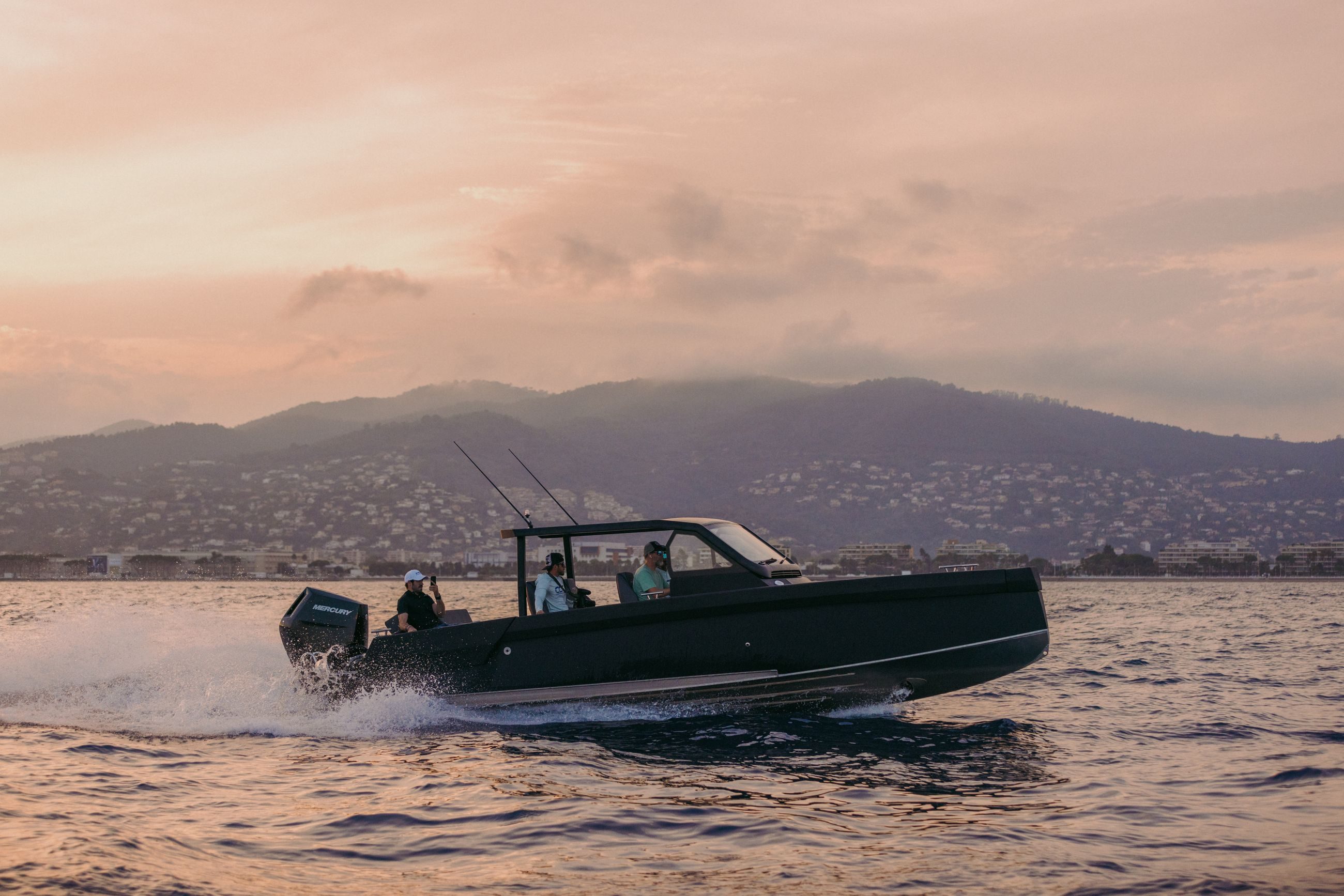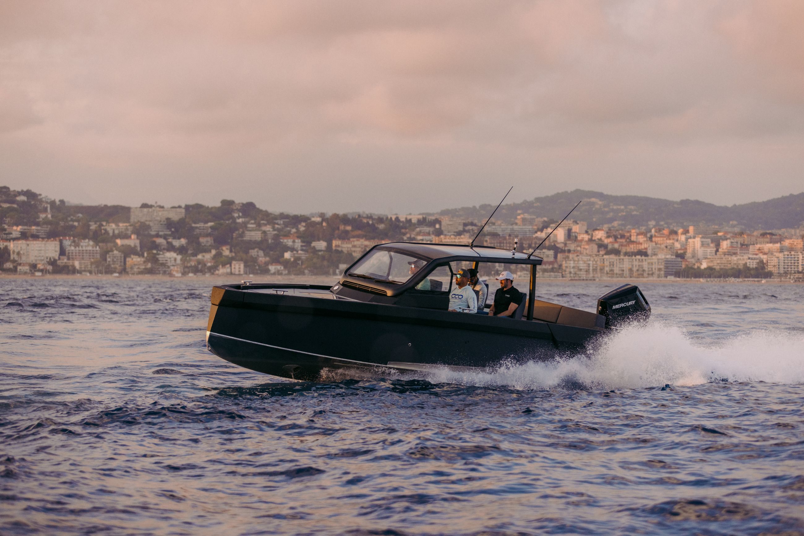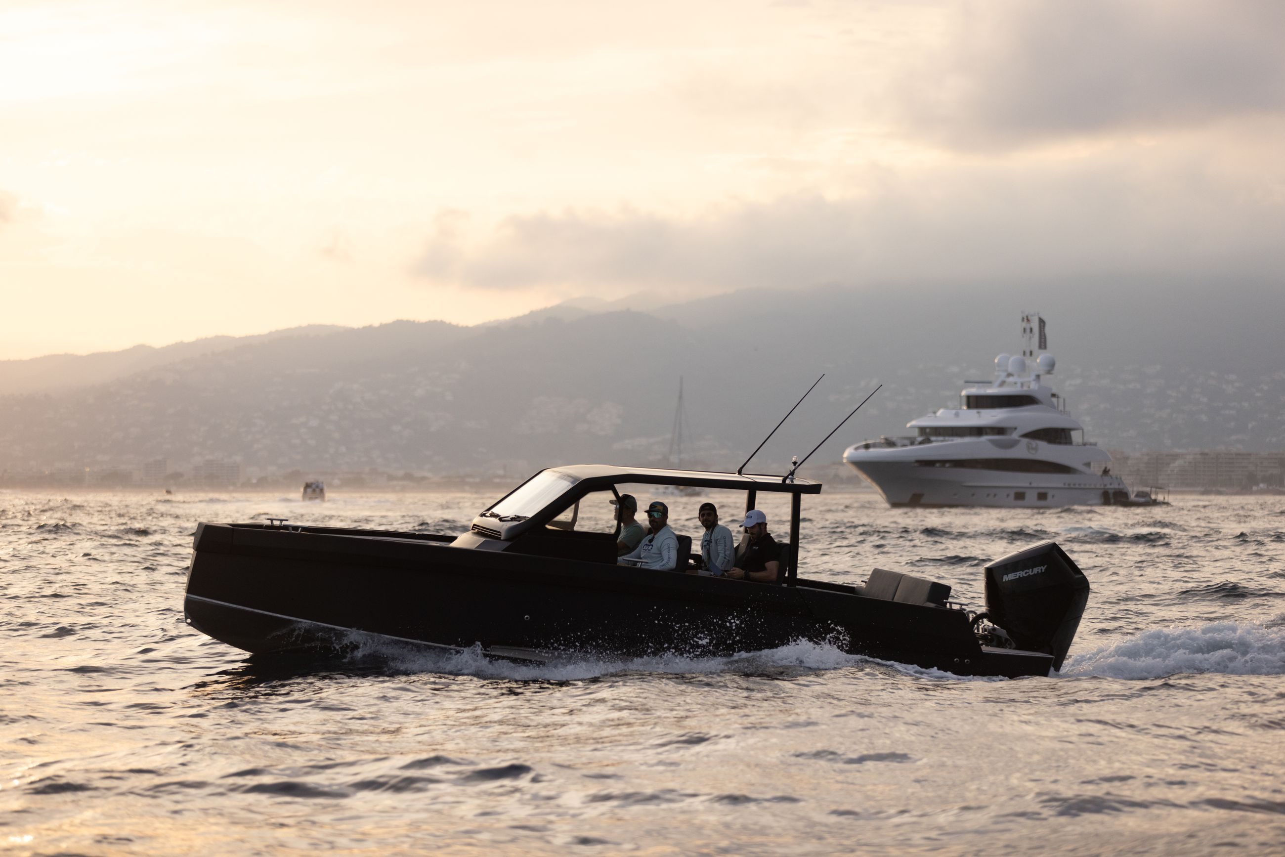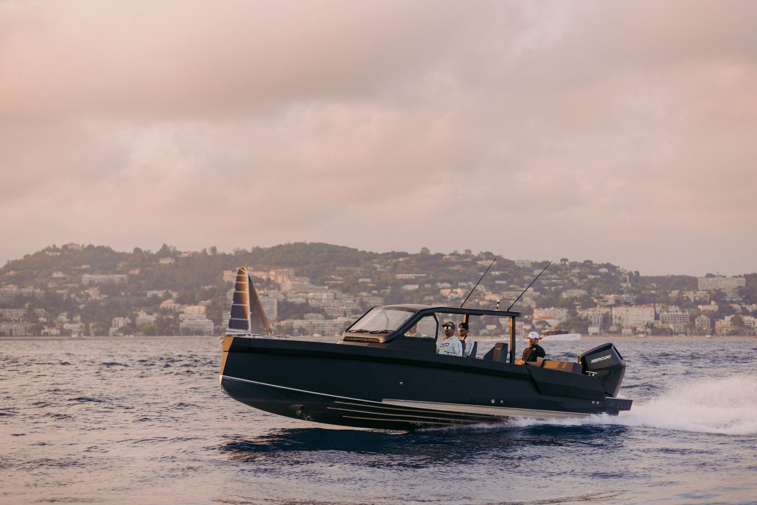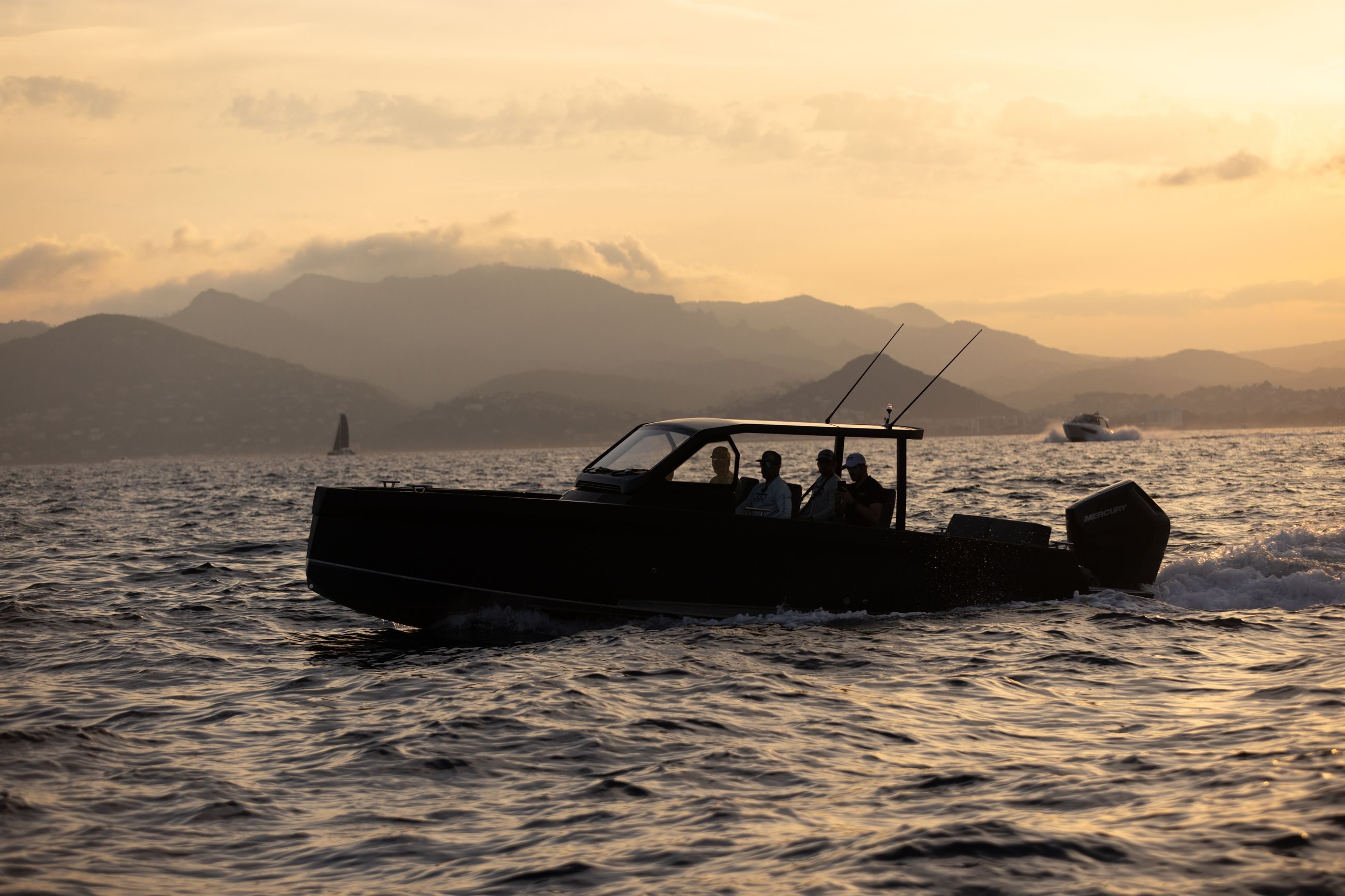 Båten kan utstyres med 2×225 hk og 1×400 V10, som når opp til +50 knop i fart.