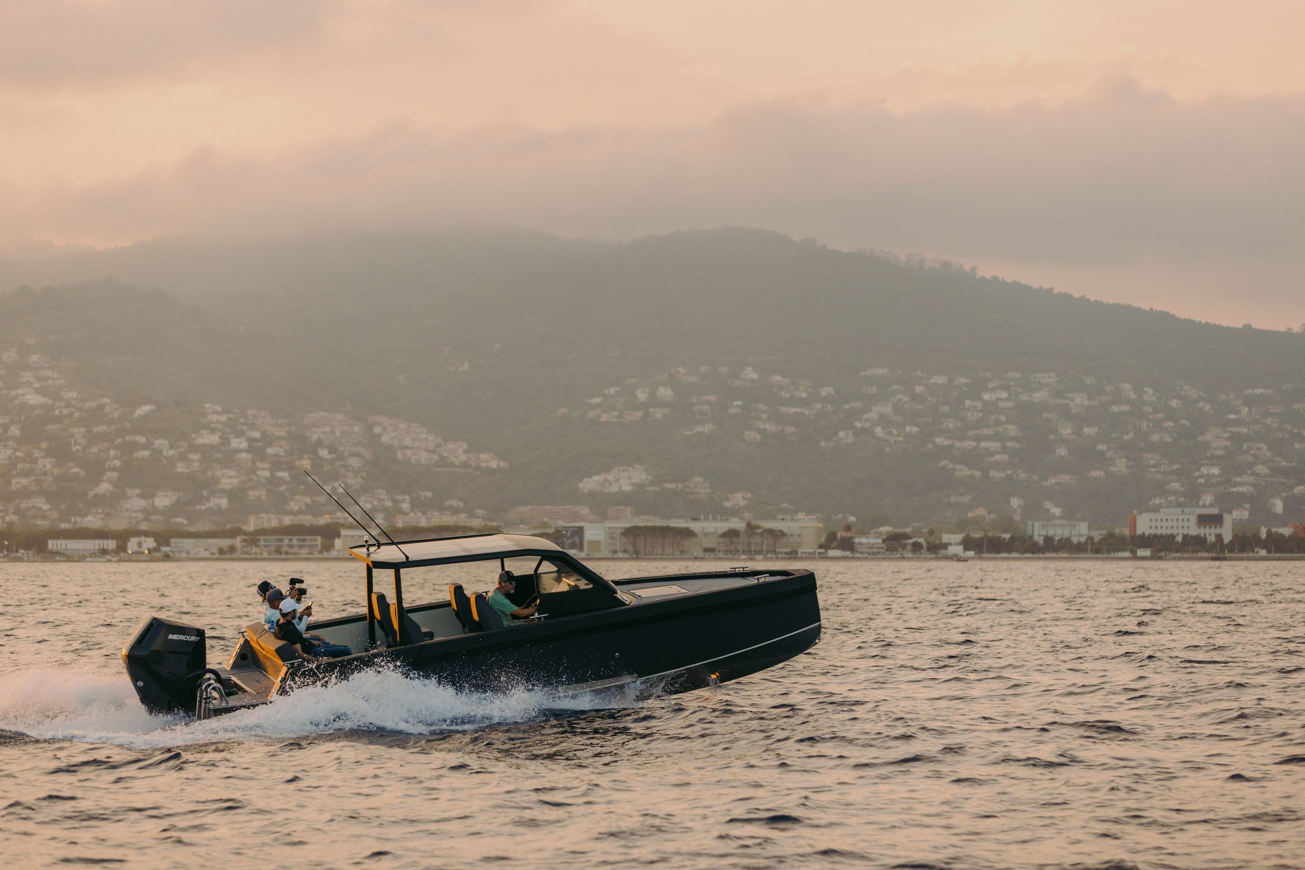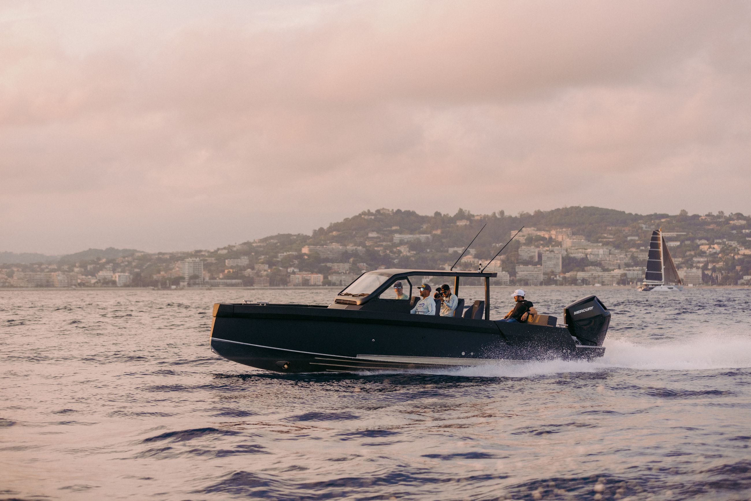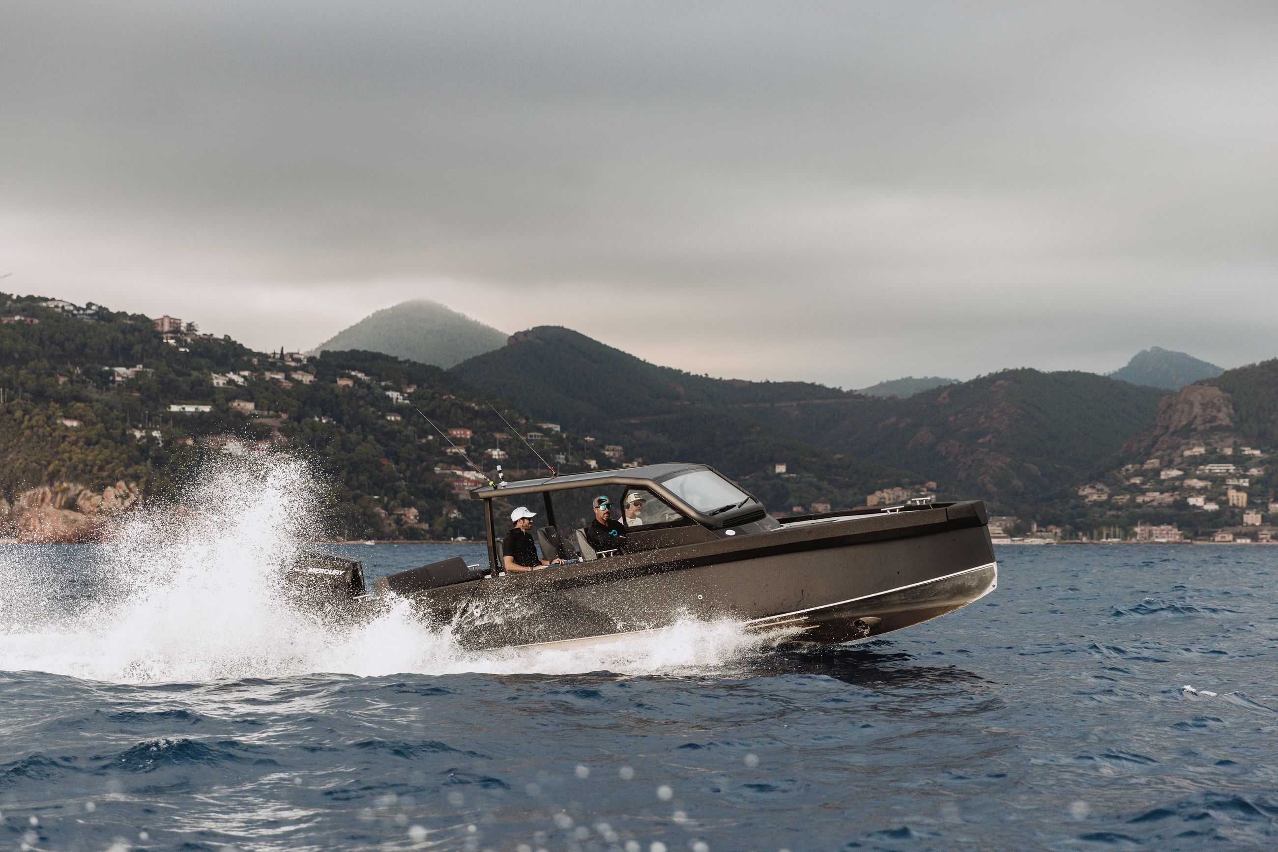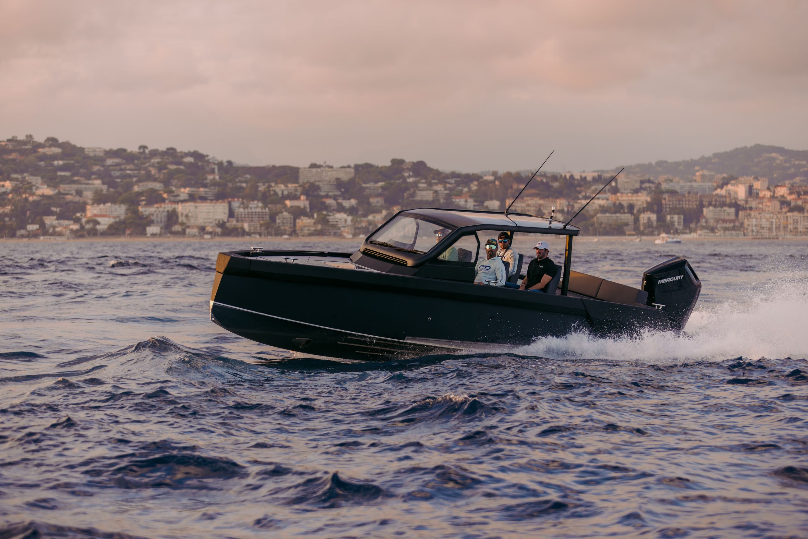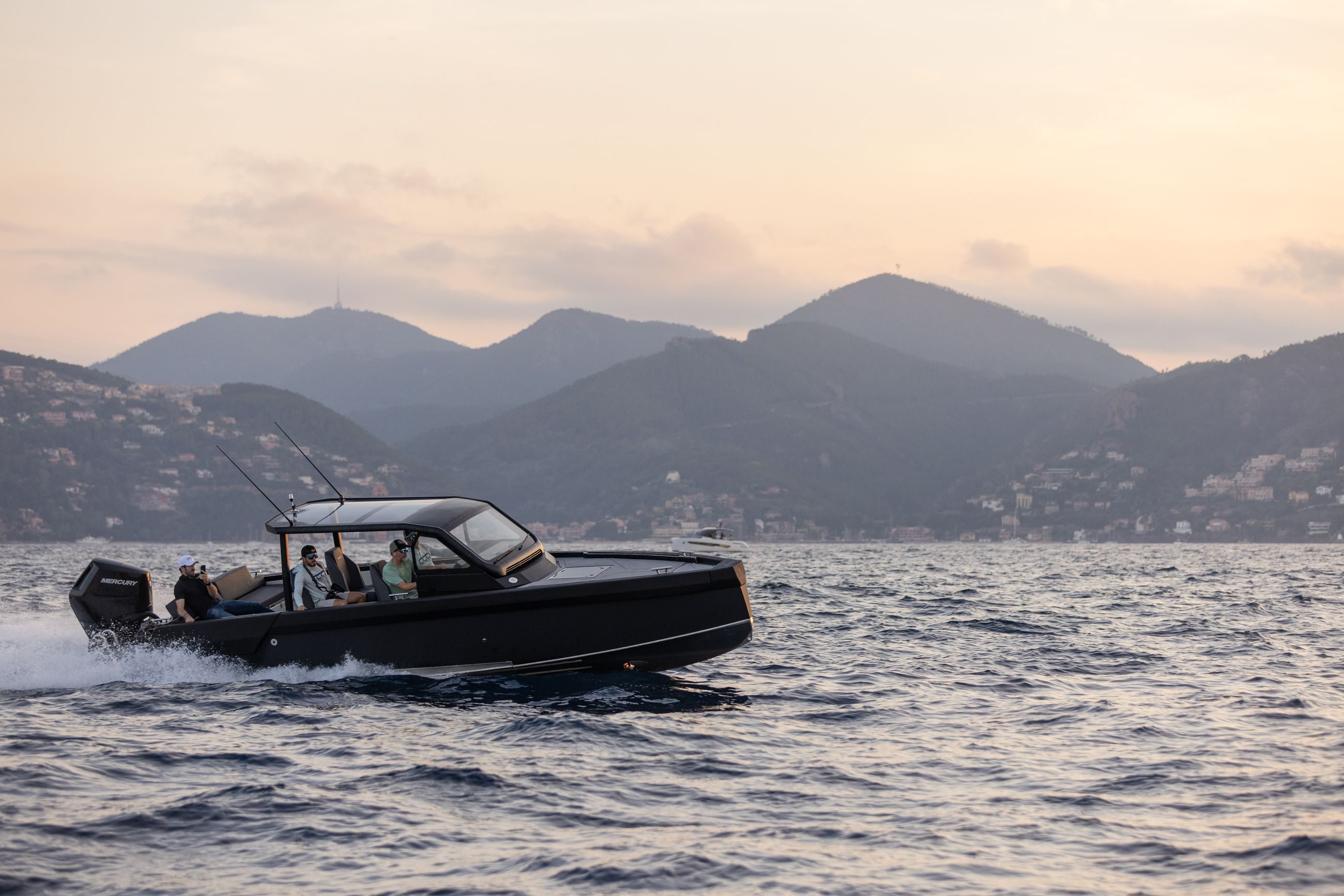 Det hevede fordekket fungerer som en plattform for sportsfiske, eller kan dekkes med en komfortabel solseng. Den billignende frontruten går fra dekksnivå mot glasstaket, og gir både UV-lysbeskyttelse og fantastisk panoramautsikt. Sitteplasser er satt til 8 passasjerer fordelt på tre rader, med alle setene vendt fremover.