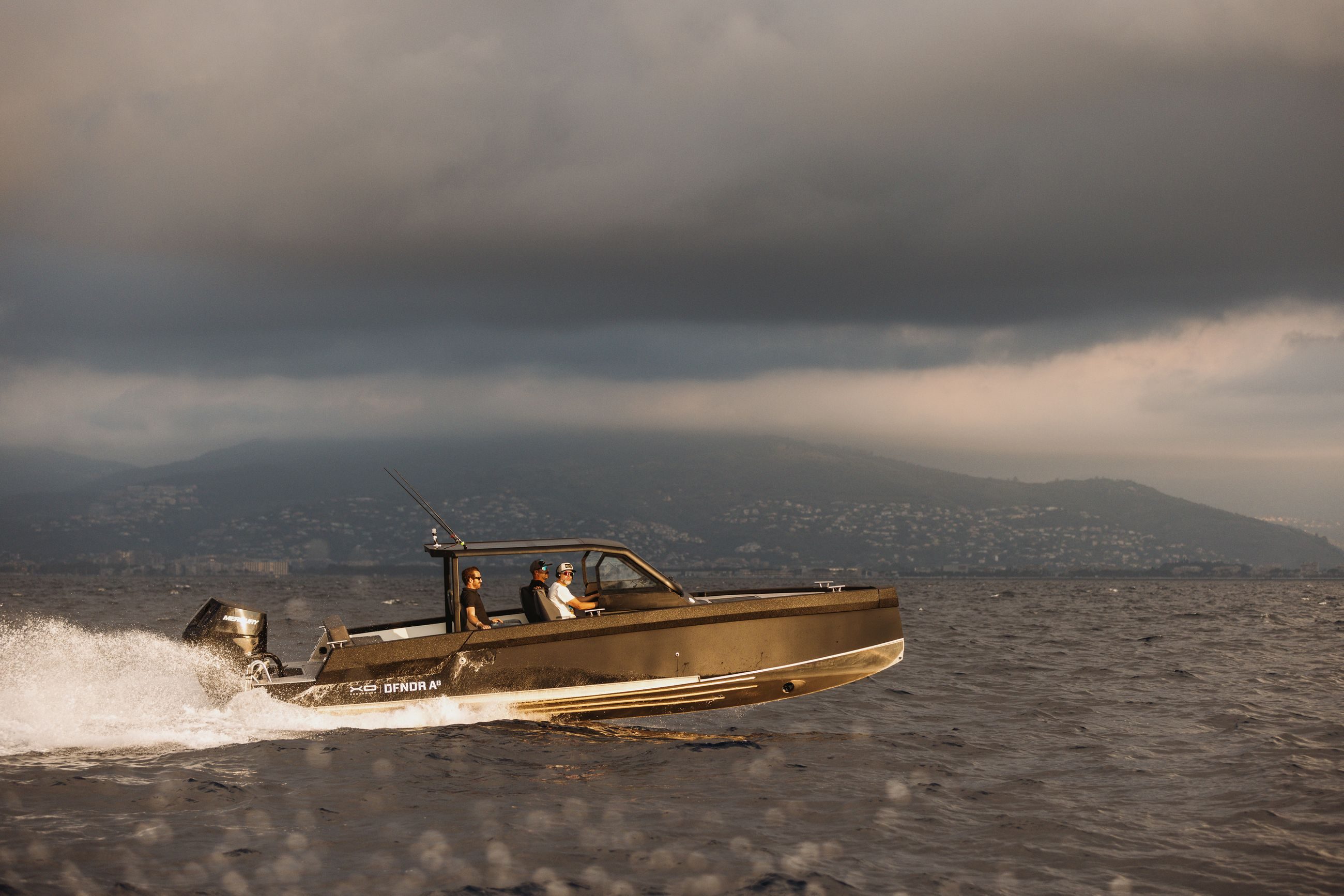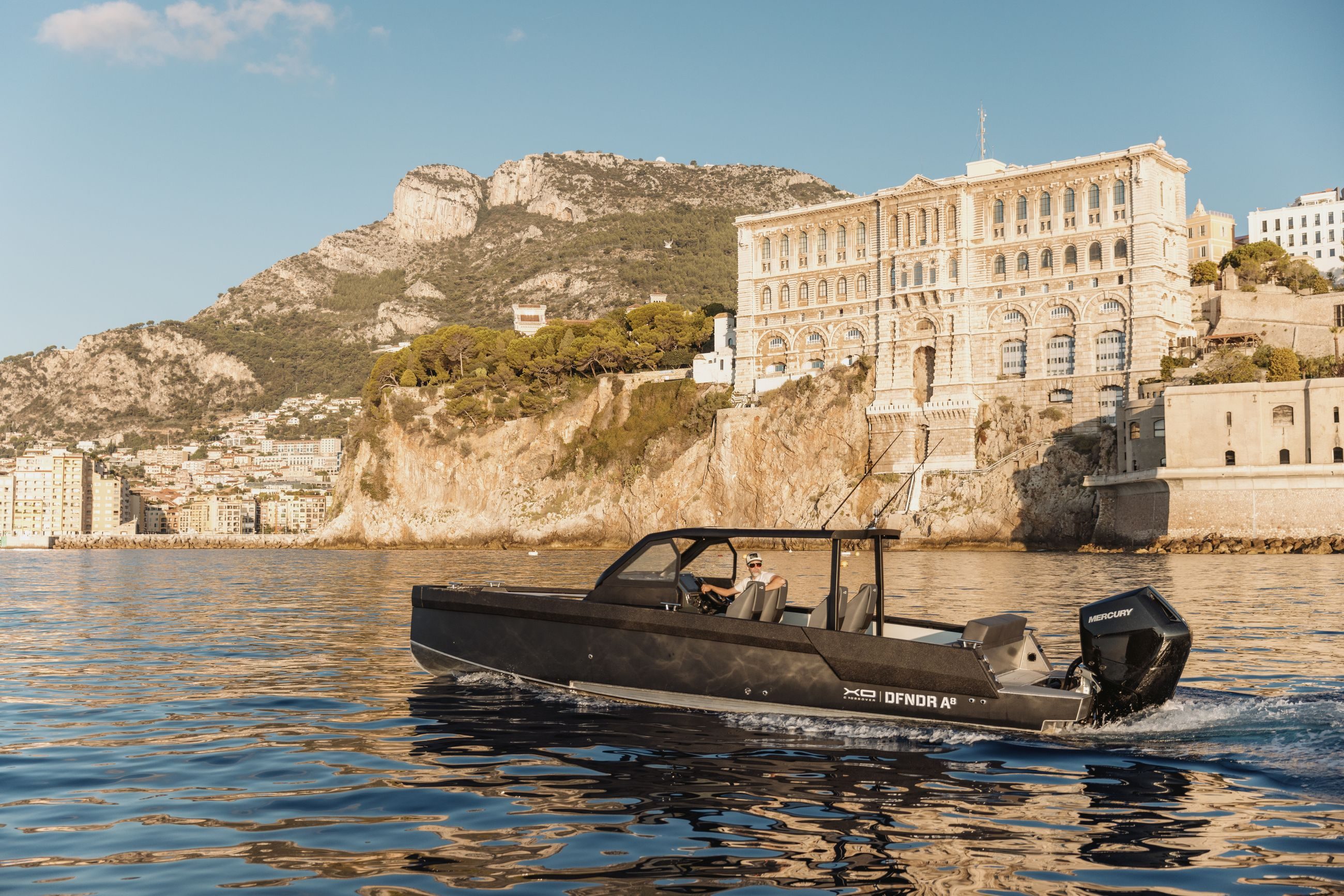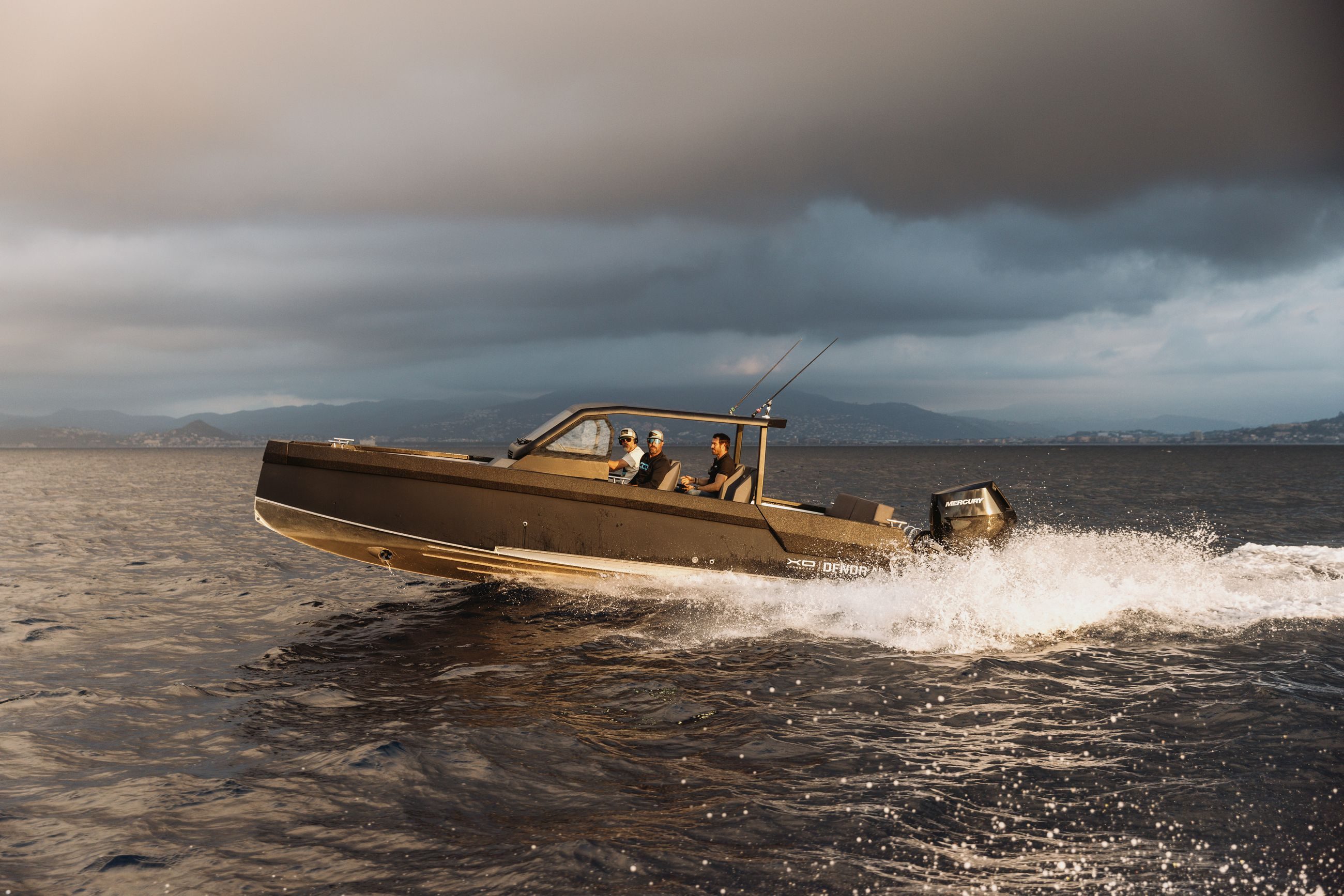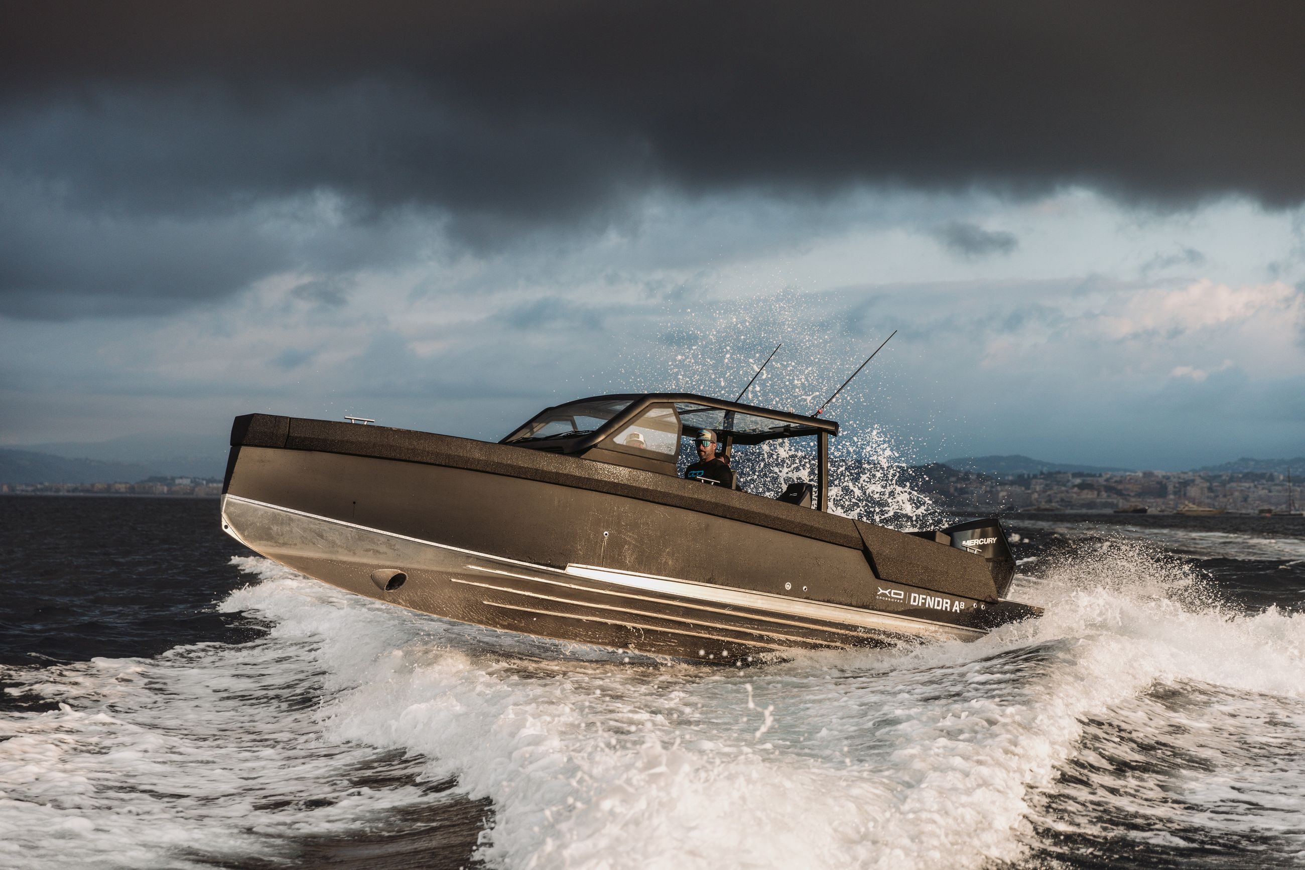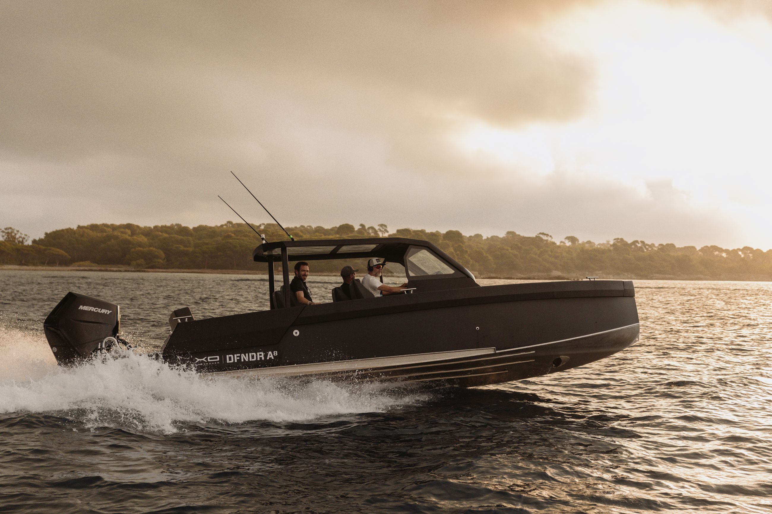 XOs skrog, holdbarhet og robusthet smelter sammen med italiensk-inspirert design og letthet, noe som resulterer i denne utmerkede sportsbåten for aktiv livsstil. XO DFNDR A8 henter elementer og inspirasjon fra ulike båter, fra ribbåter til motorbåter, og kombinerer alle de beste egenskapene til action-laget båt til ett fartøy med aluminiumsskrog.