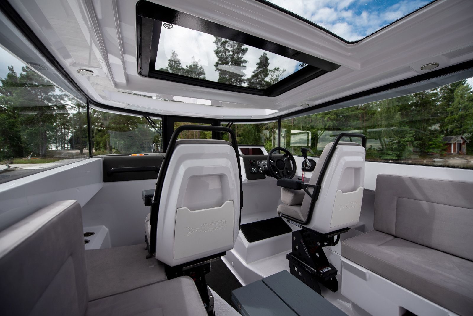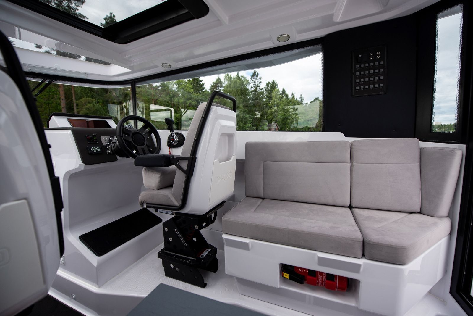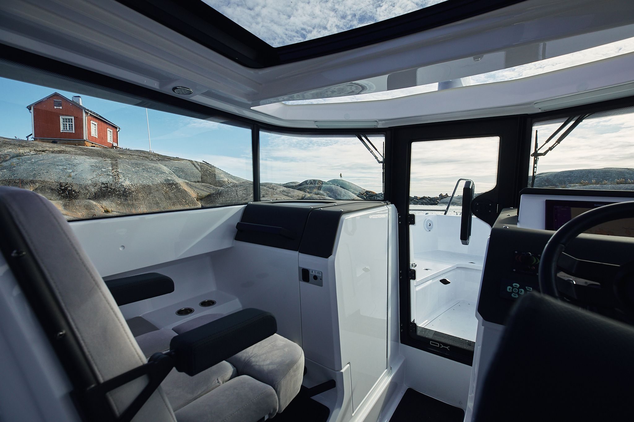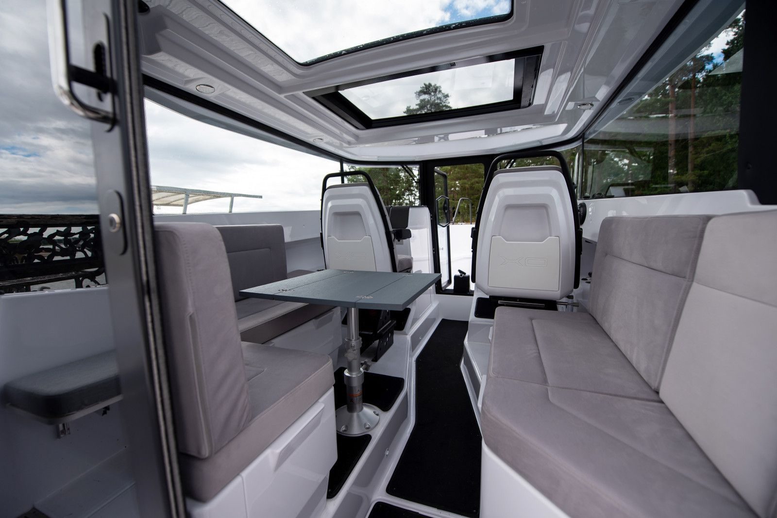 Kabinbåter gir sjelden den typen kjørekomfort som fullfjærende seter på EXPLR 9 gjør – andrepilotens sete er tilgjengelig som ekstrautstyr. Her snakker vi om bekvemmelighet. Den eksepsjonelt romslige kabinen direkte ideell for hvile og avslapning som den ekstraordinære lydisoleringen effektivt støtter.