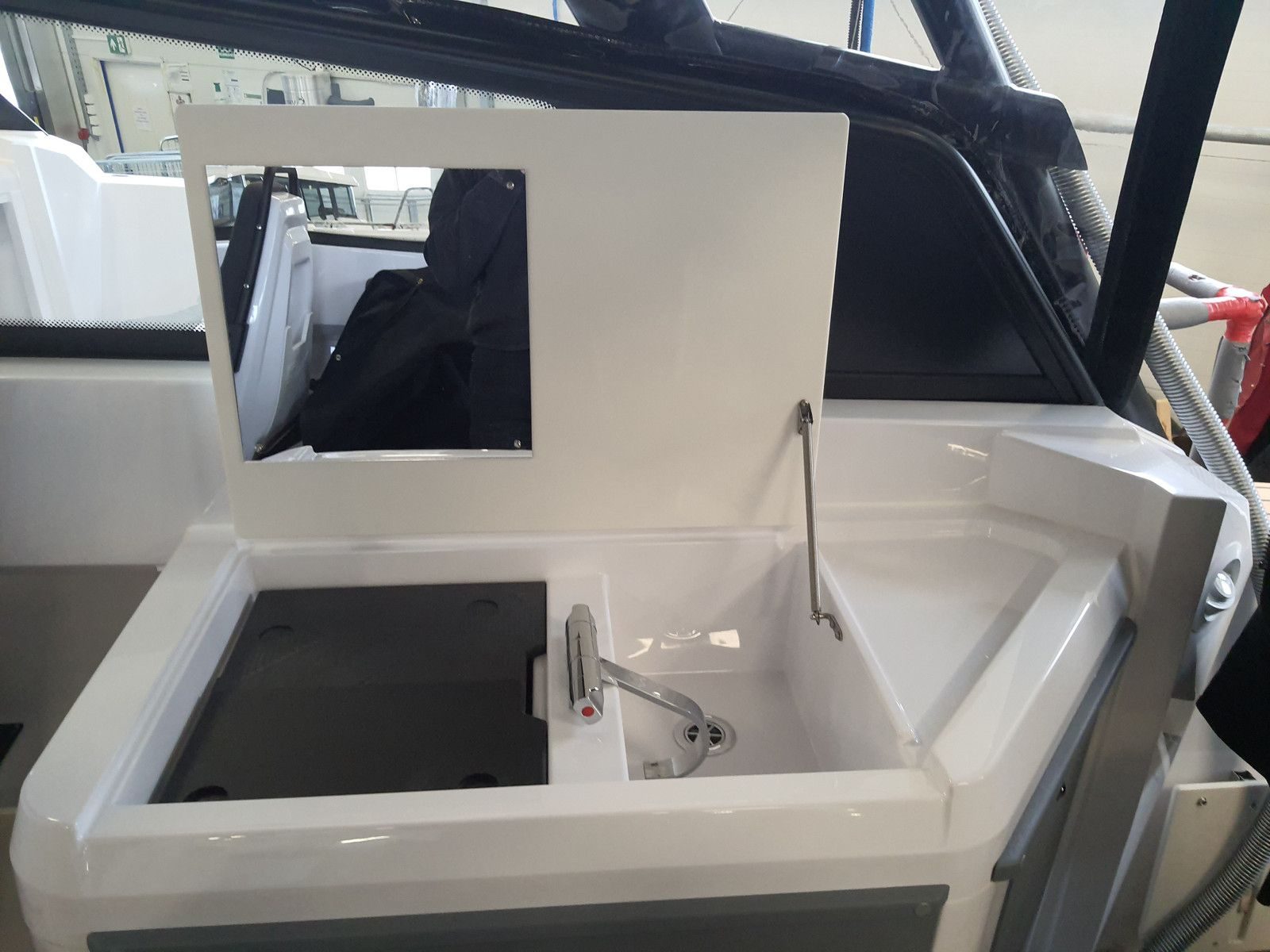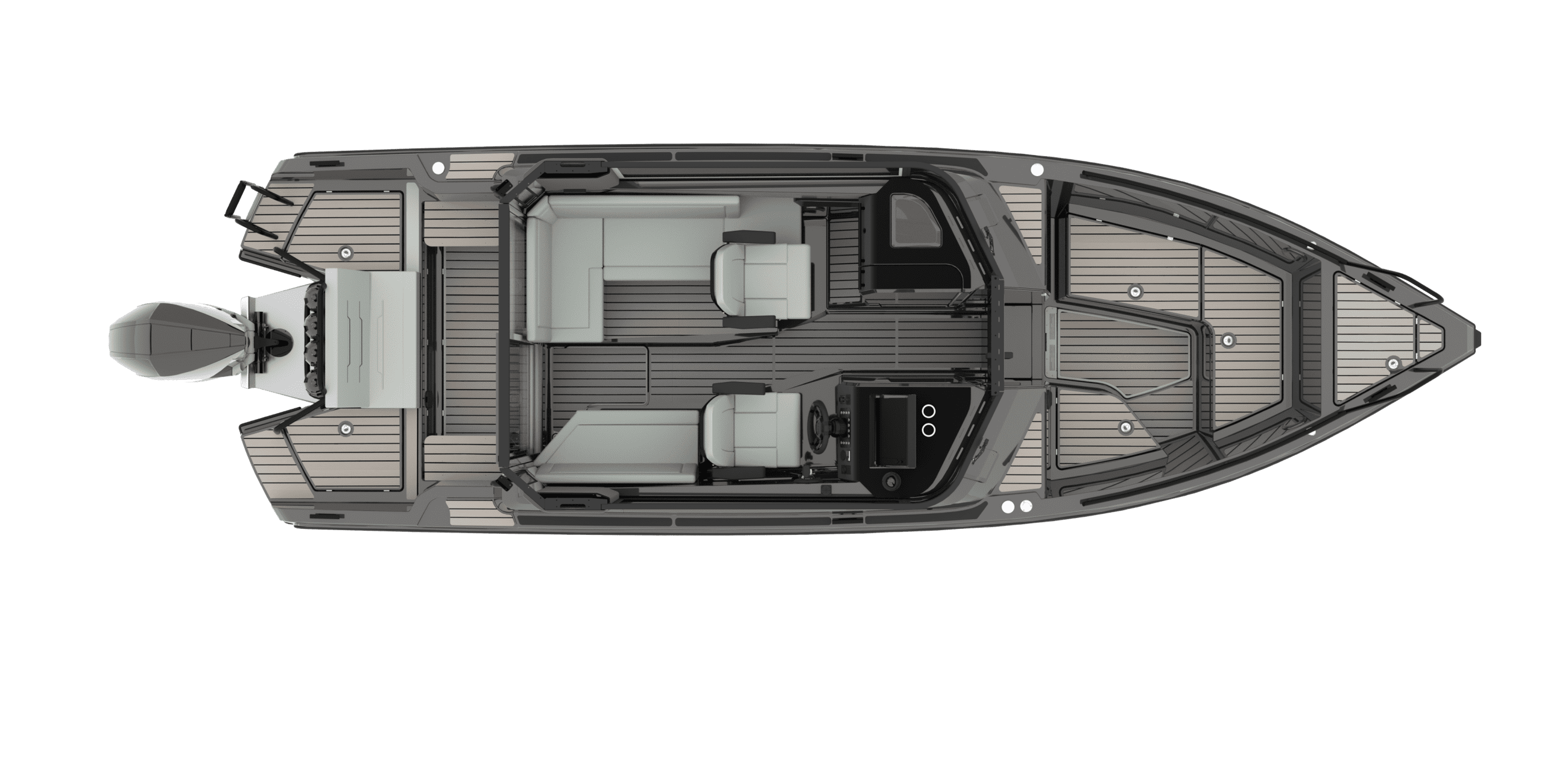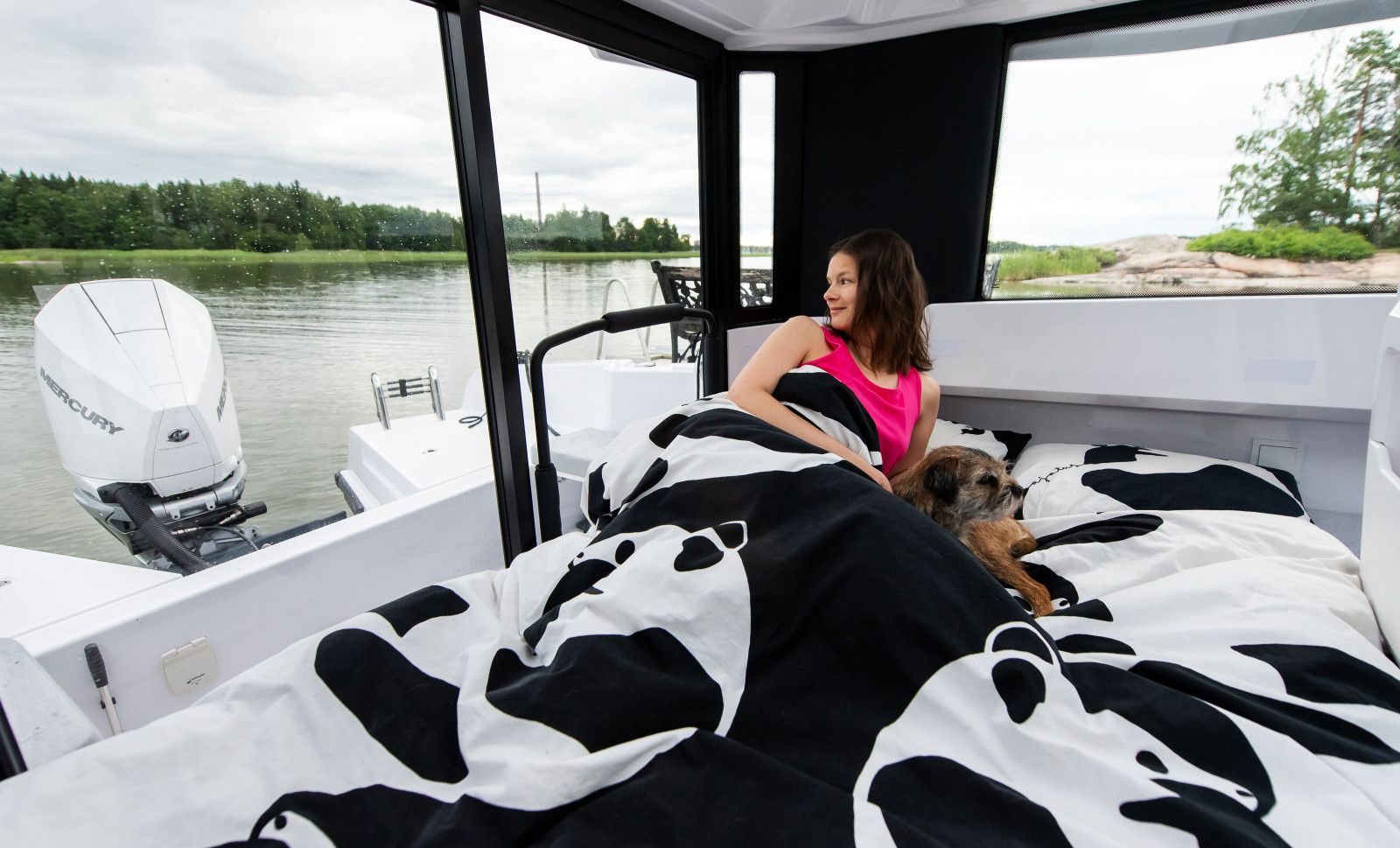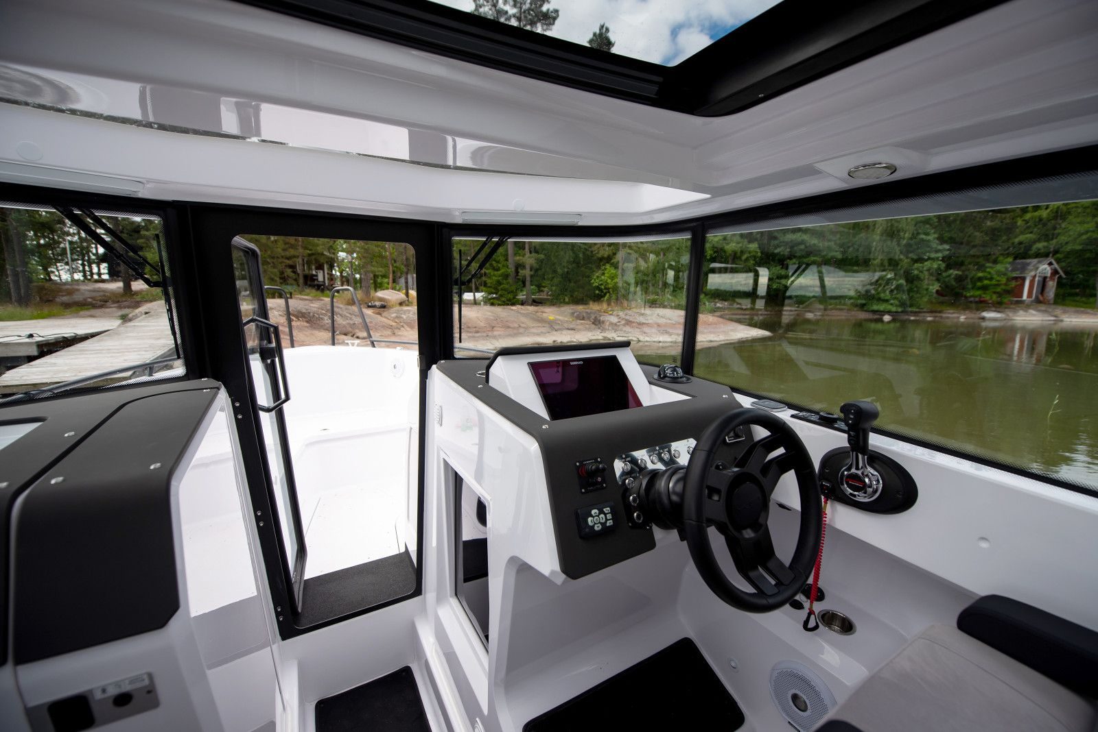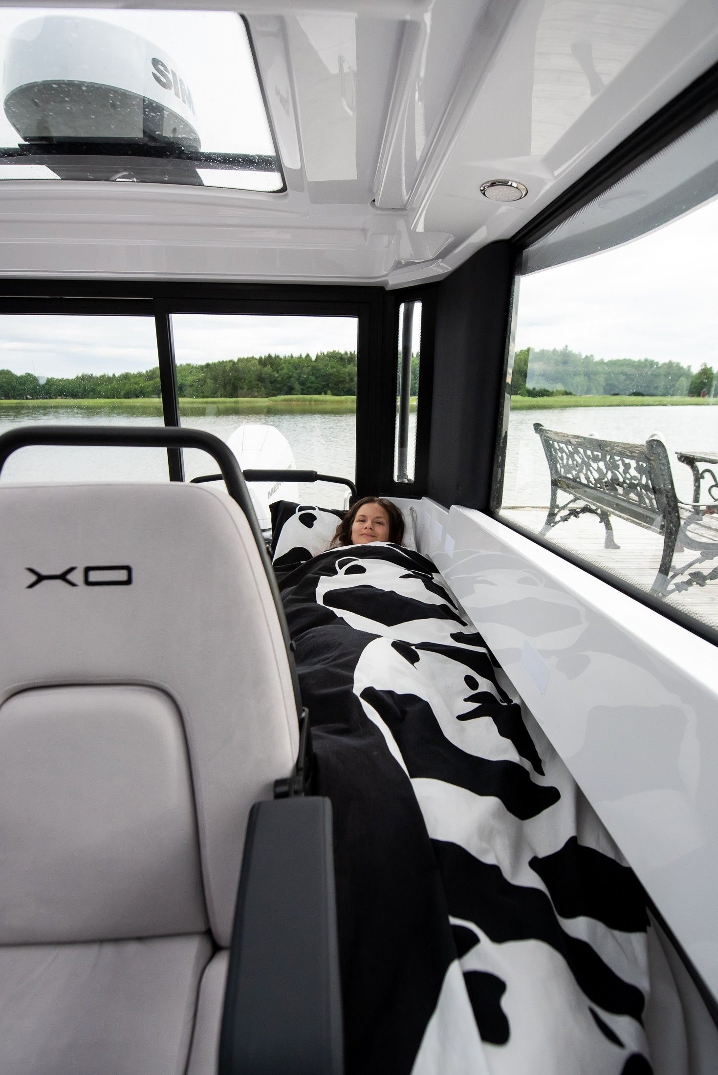 Kabinbåter gir sjelden den typen kjørekomfort som fullfjærende seter på EXPLR 9 gjør – andrepilotens sete er tilgjengelig som ekstrautstyr. Her snakker vi om bekvemmelighet. Den eksepsjonelt romslige kabinen direkte ideell for hvile og avslapning som den ekstraordinære lydisoleringen effektivt støtter.