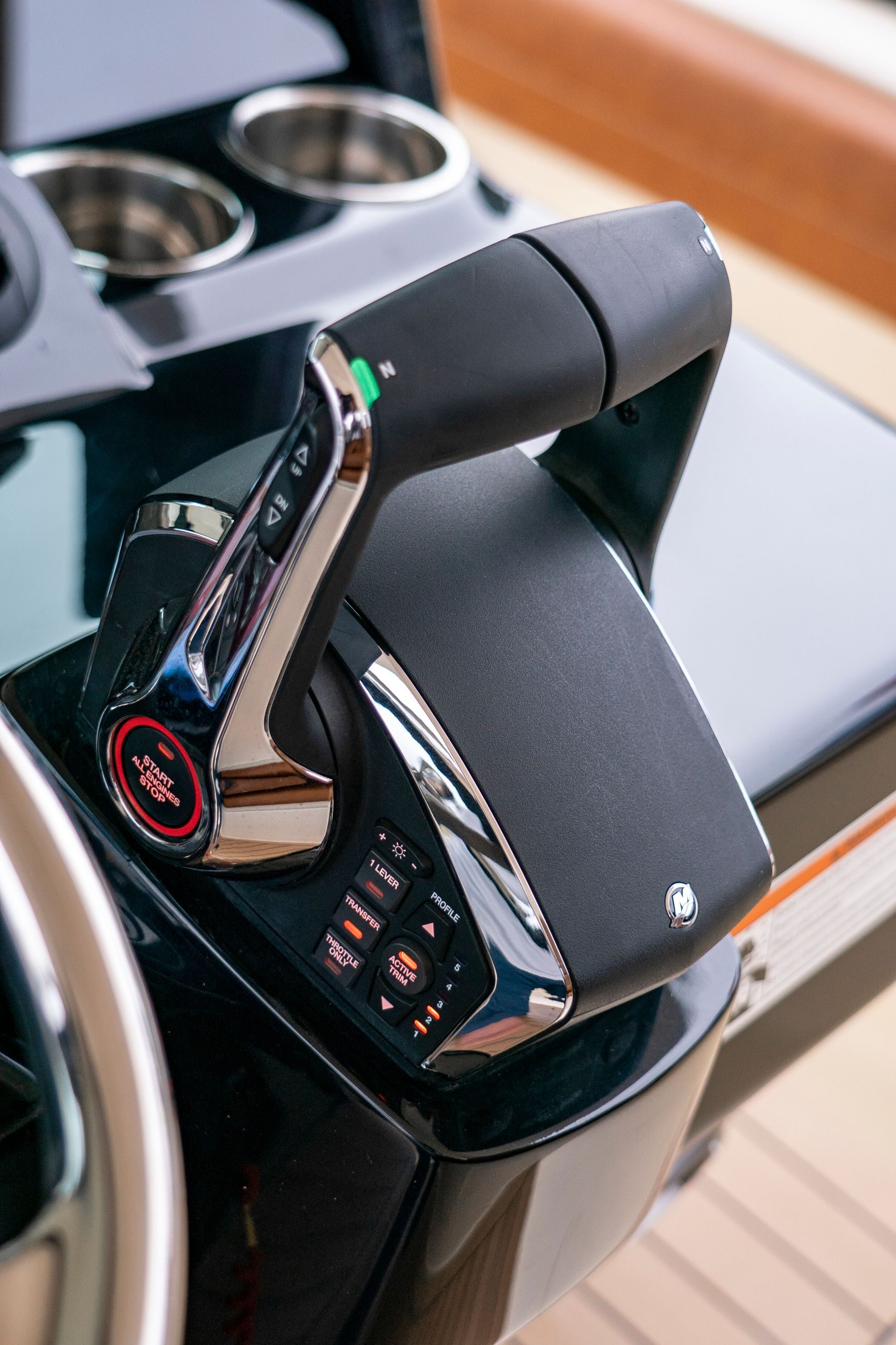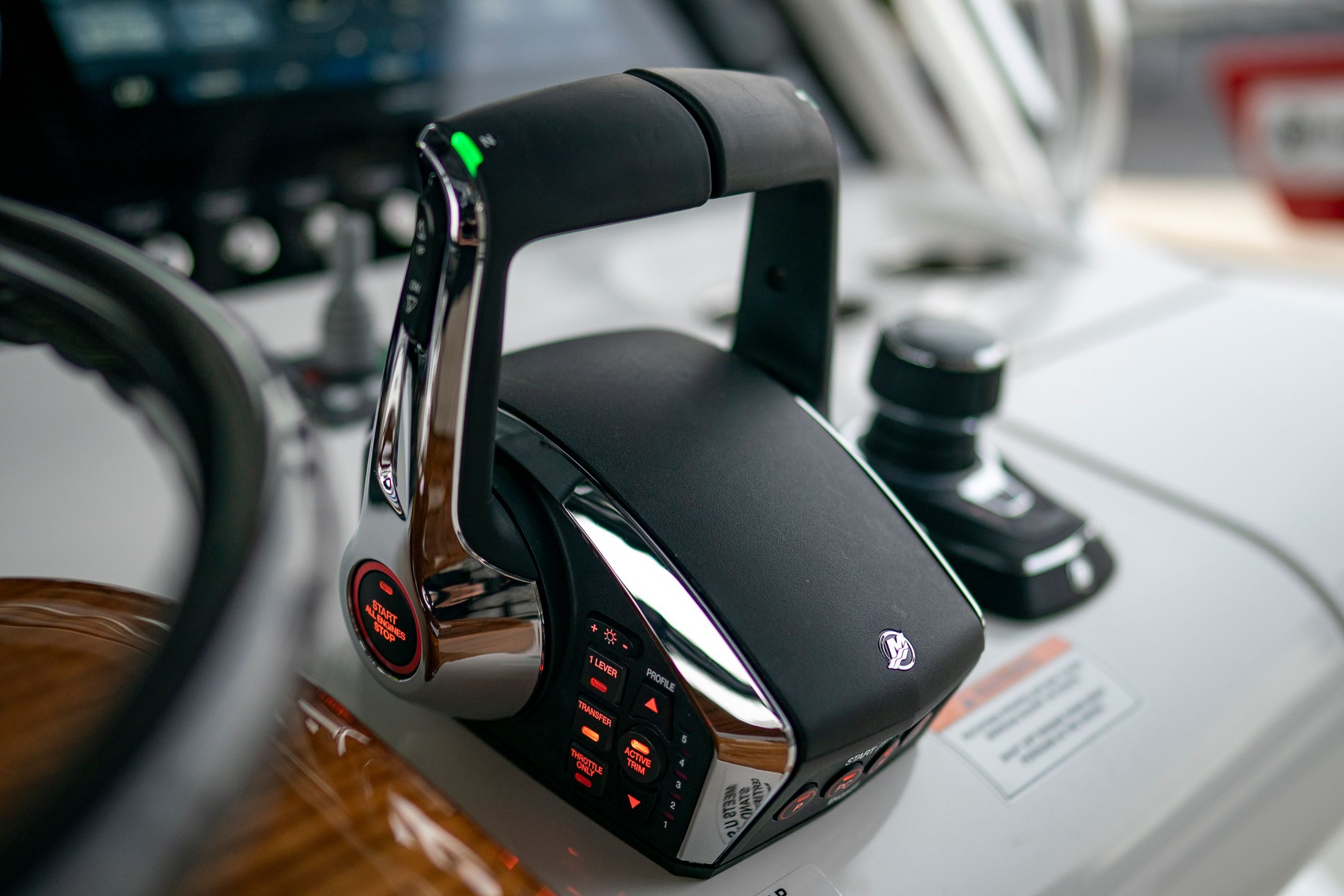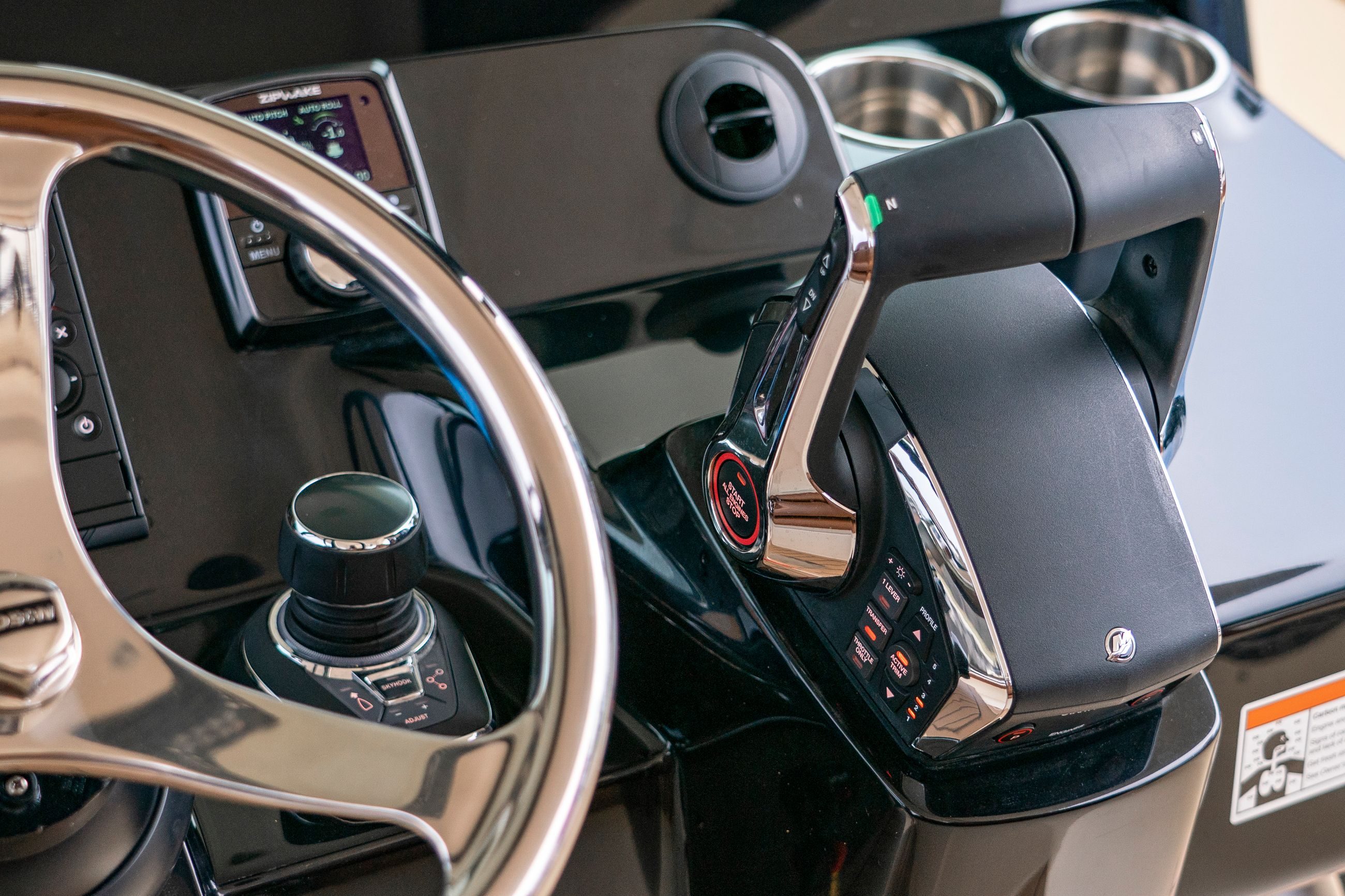 Elektrohydrauliske kontroller gjør at det styrbare undervannshuset reagerer umiddelbart på førerkommandoer. Uten bevegelse fra motoren over vann, er det ingen distraksjoner – bare presis manøvrerbarhet rundt i havnen og jevn, uanstrengt håndtering i åpent farvann.